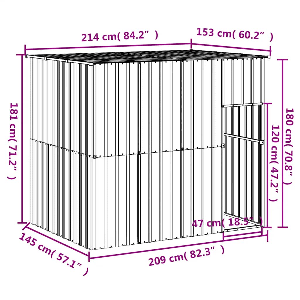 Cușcă câine cu acoperiș antracit 214x153x181 cm oțel galvanizat GartenMobel Dekor