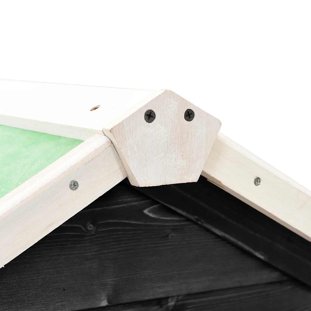 Această căsuță pentru iepuri oferă animalelor dvs. de companie un spațiu generos de joacă, în vreme ce plasa din sârmă de oțel ajută la prevenirea comportamentelor răuvoitoare și a accidentelor neașteptate. În același timp, construcția cu plasă din sârmă de oțel vă asigură monitorizarea animalelor de companie și le permite acestora să observe împrejurimile și să respire suficient aer curat. Ferma de iepuri permite accesul prin 2 uși și este construită dintr-un cadru de lemn masiv de brad, fiind stabilă și durabilă. De asemenea, acoperișul verde înclinat este acoperit cu un material textil rezistent la apă, ținând ploaia la depărtare. Un sertar căptușit cu folie de tablă este utilizat pentru curățarea ușoară a cuștii. Adăpostul oferă zona perfectă pentru dormit. În plus, rampa cu urcare ușoară duce de la nivelul inferior la etajul superior, iar tava retractabilă facilitează curățarea.