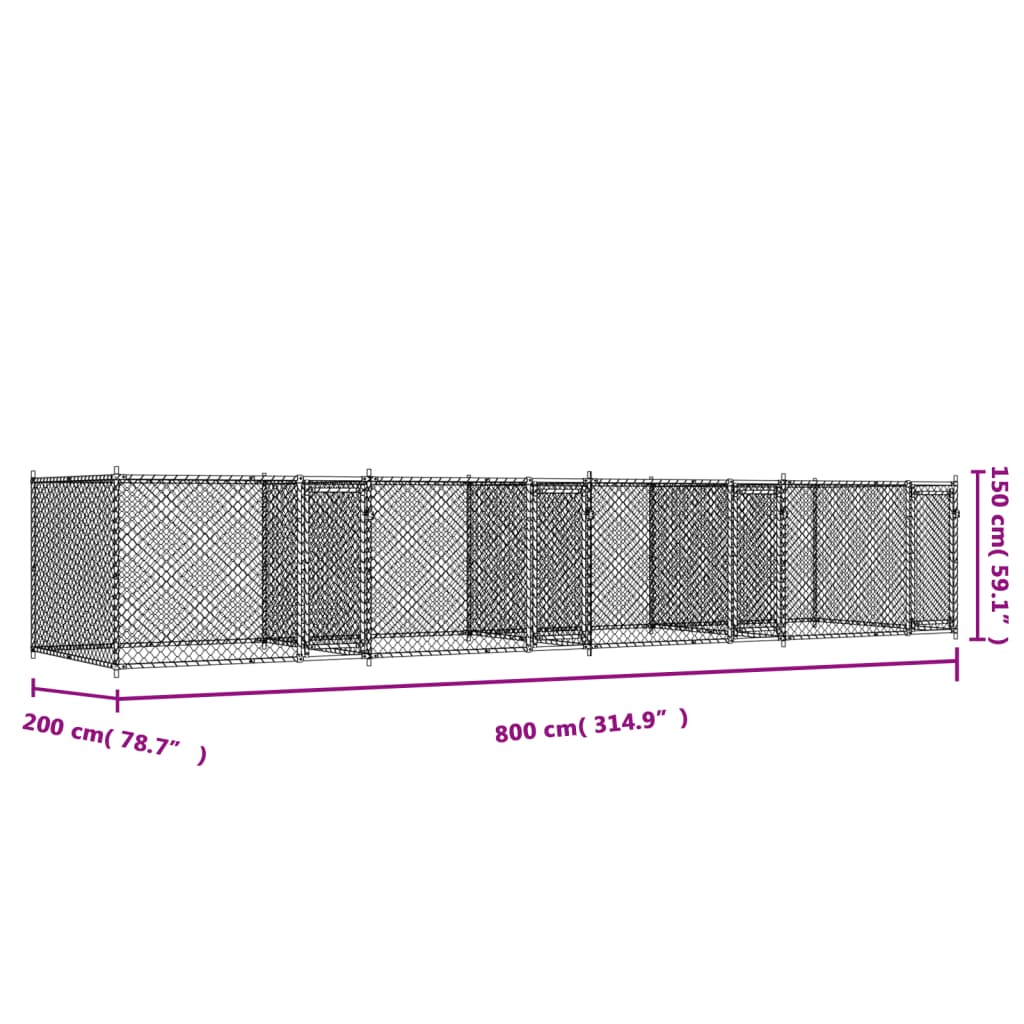 Descriere Cușcă câini uși, gri, 8x2x1,5 m,