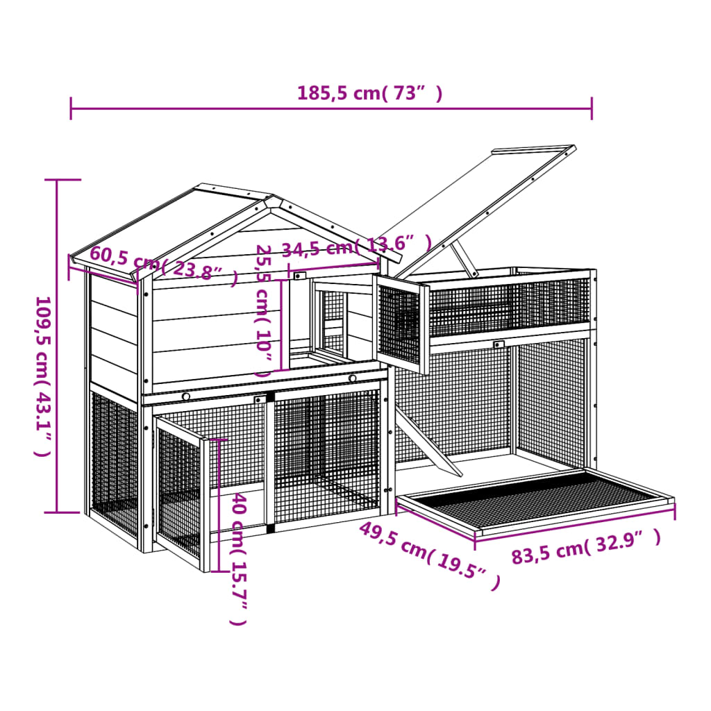 Cușcă pentru iepuri maro 185,5x60,5x109,5 cm lemn masiv de pin GartenMobel Dekor