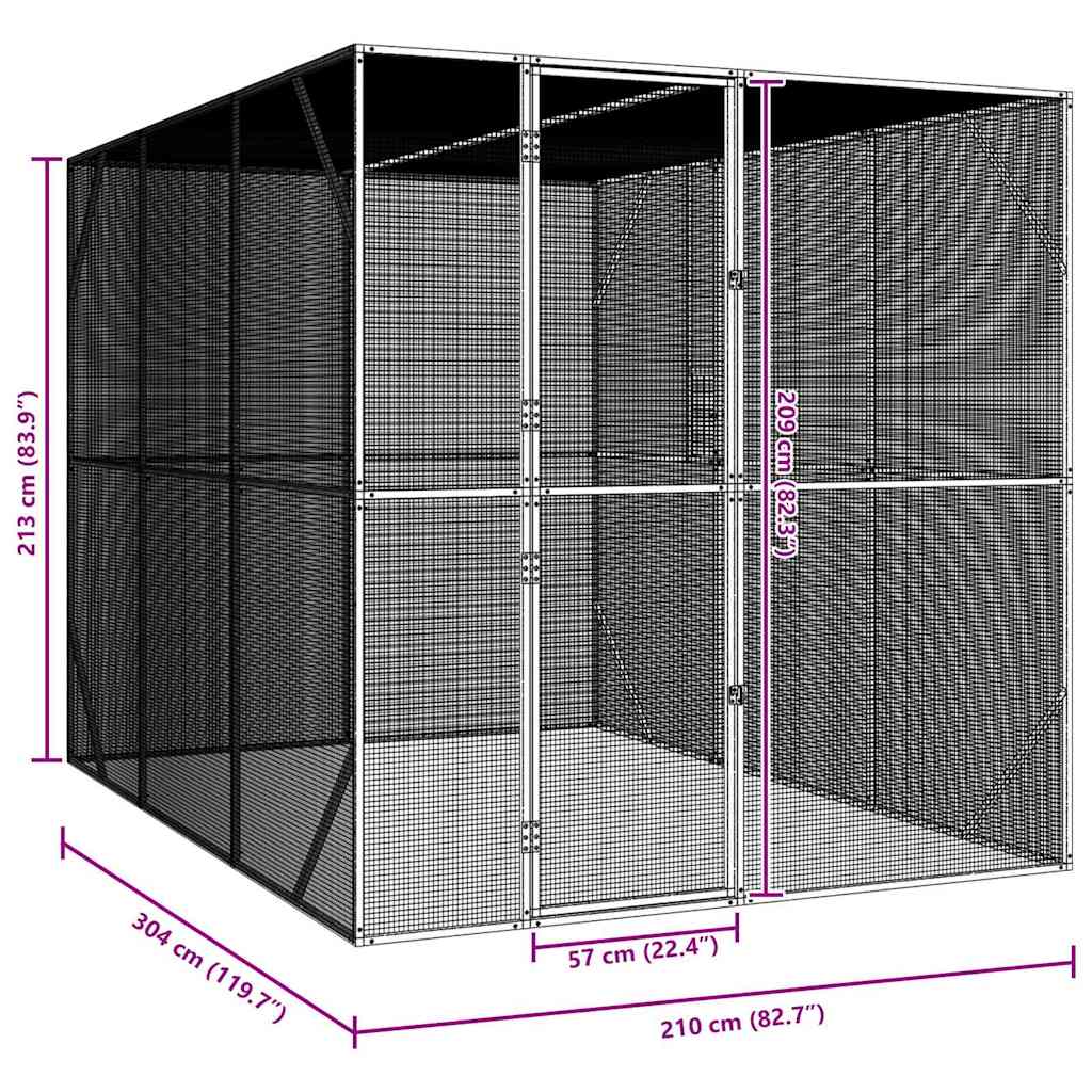 Cușcă pentru păsări Antracit 210 x 304 x 213 cm Oțel Galvanizat GartenMobel Dekor