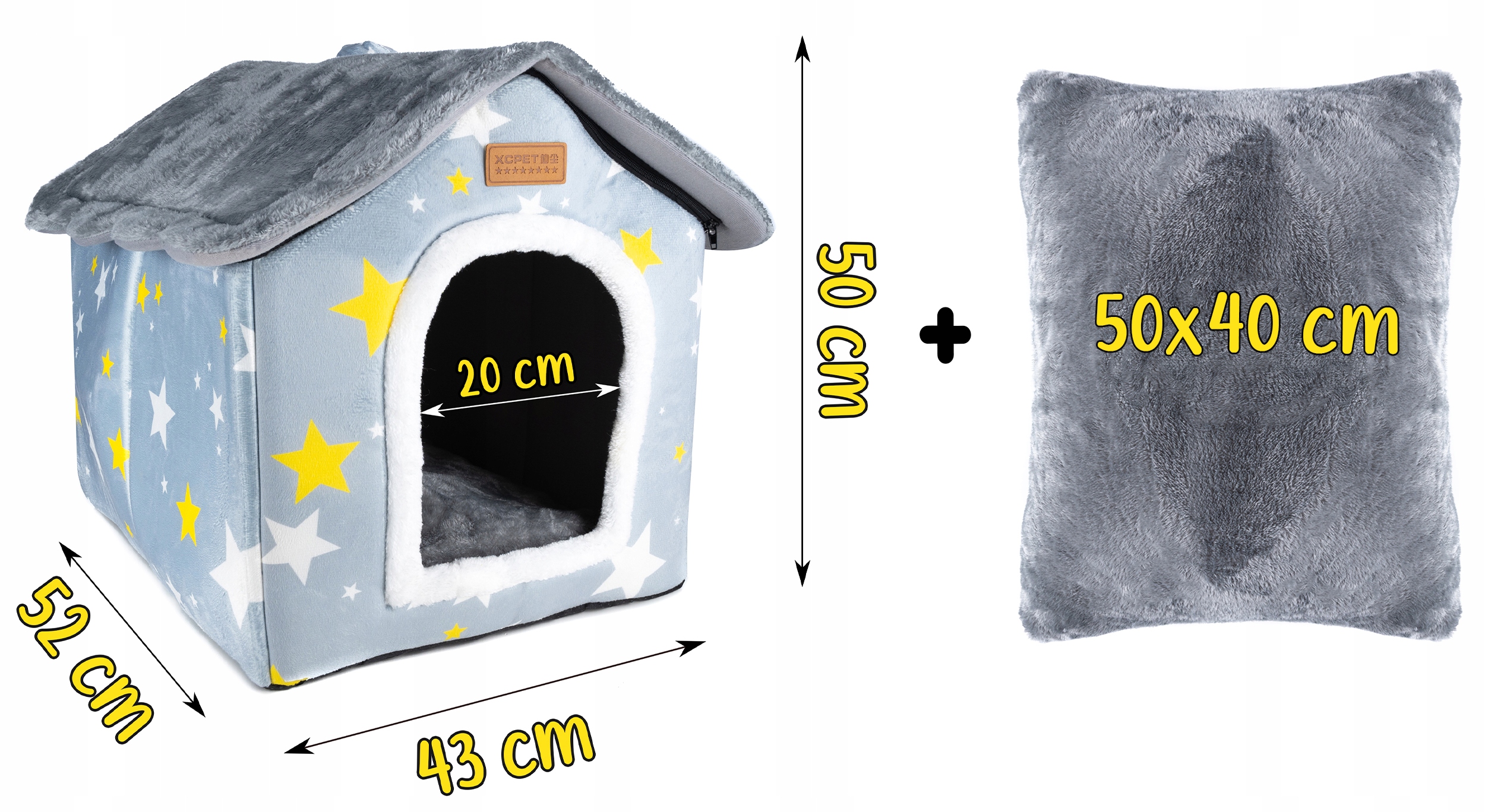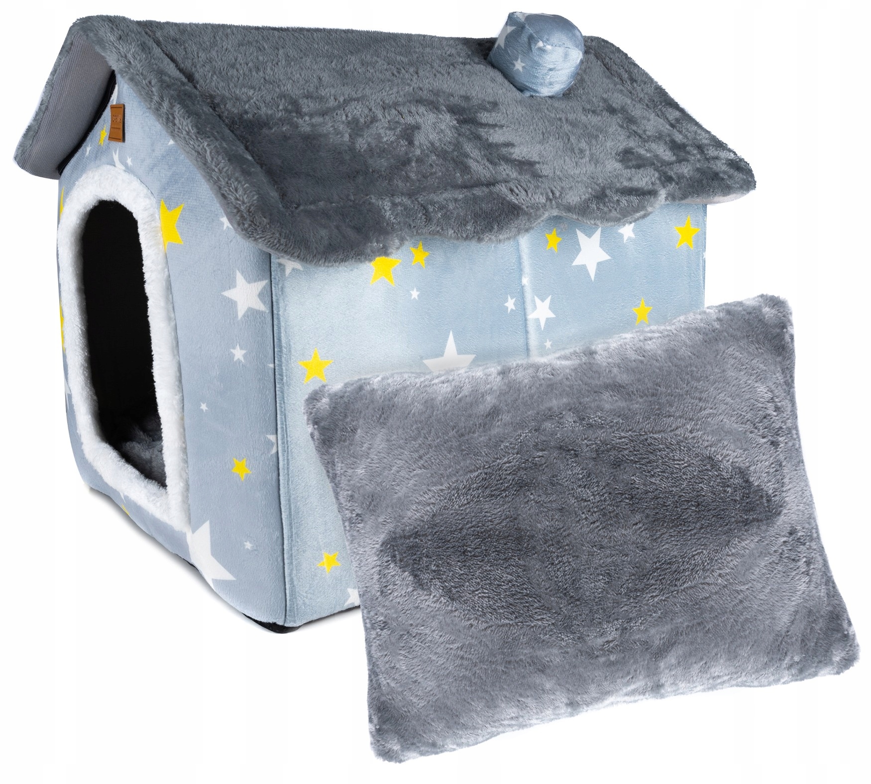 Cusca pentru pisici sau caini de talie mica, pentru interior, din catifea si bumbac, perna inclusa, 52x43x50cm Household NewTrend