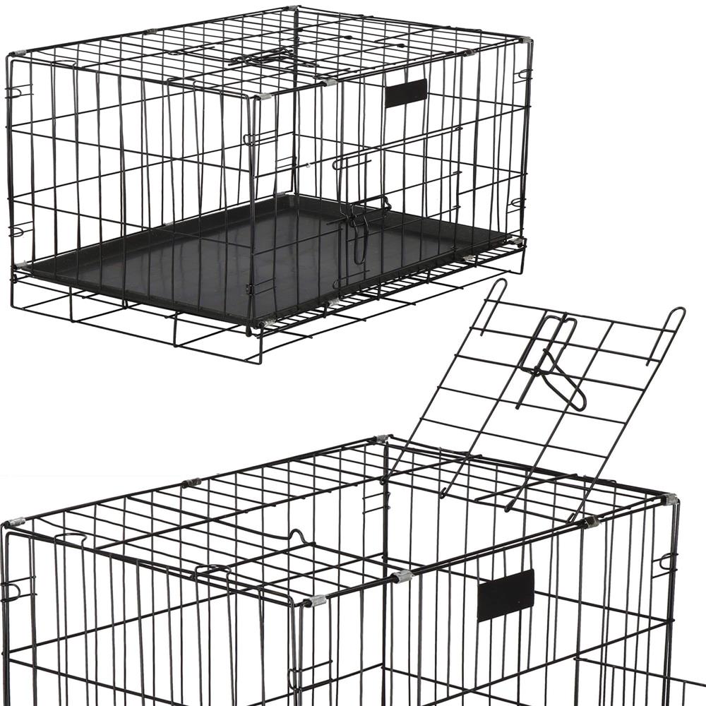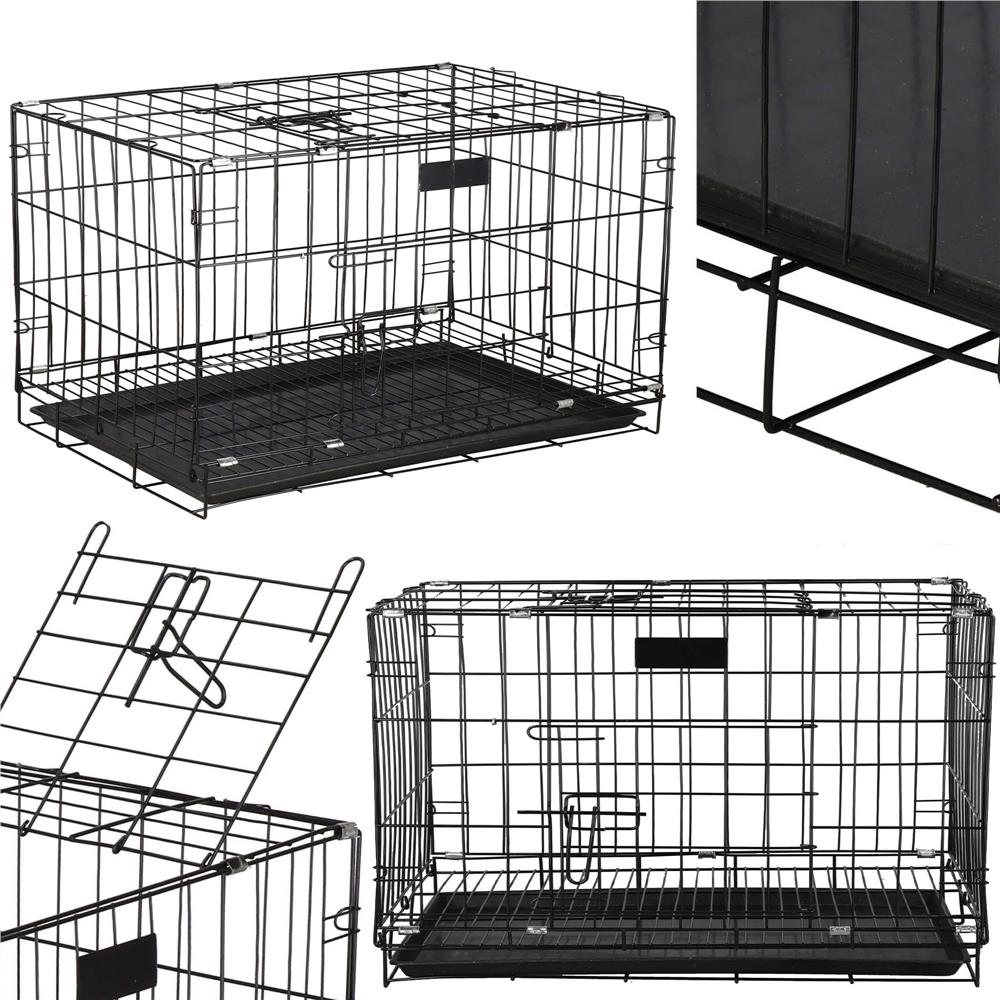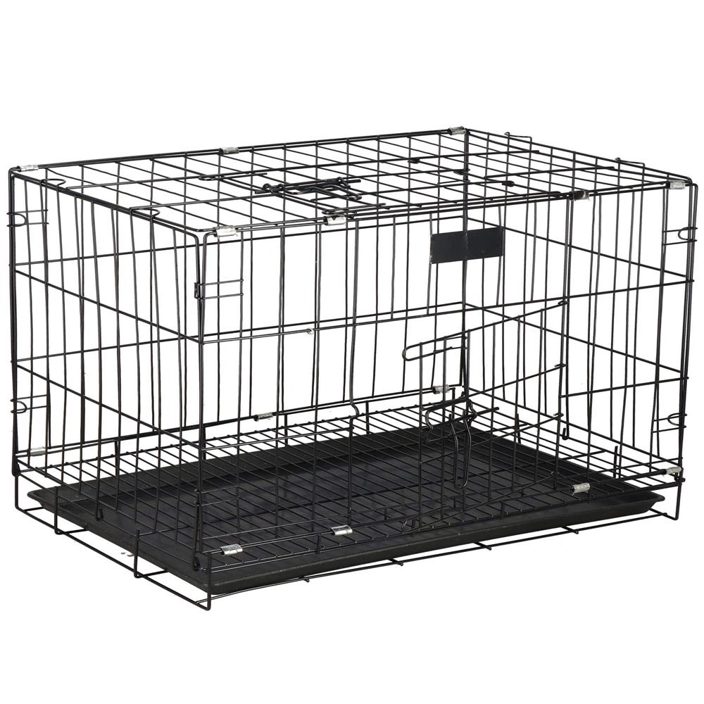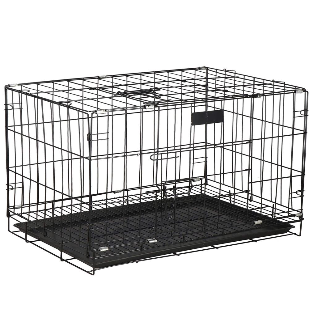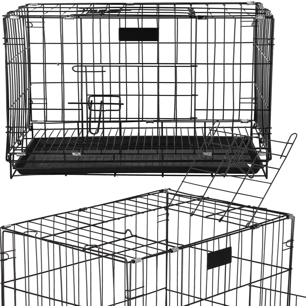 Cusca pliabila pentru caini XL din metal, cu 2 usi, neagra, 93x67x56 cm