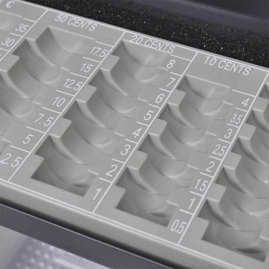 - Organizare practică pentru bani În interior, cutia vine cu compartimente clare pentru bancnote, monede și chitanțe, așa că e ușor să-ți gestionezi banii fără să te complici.