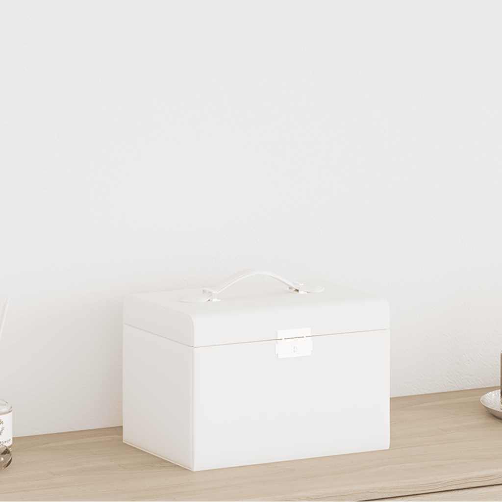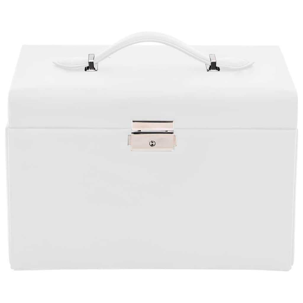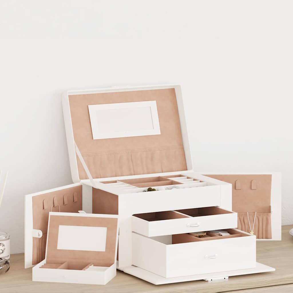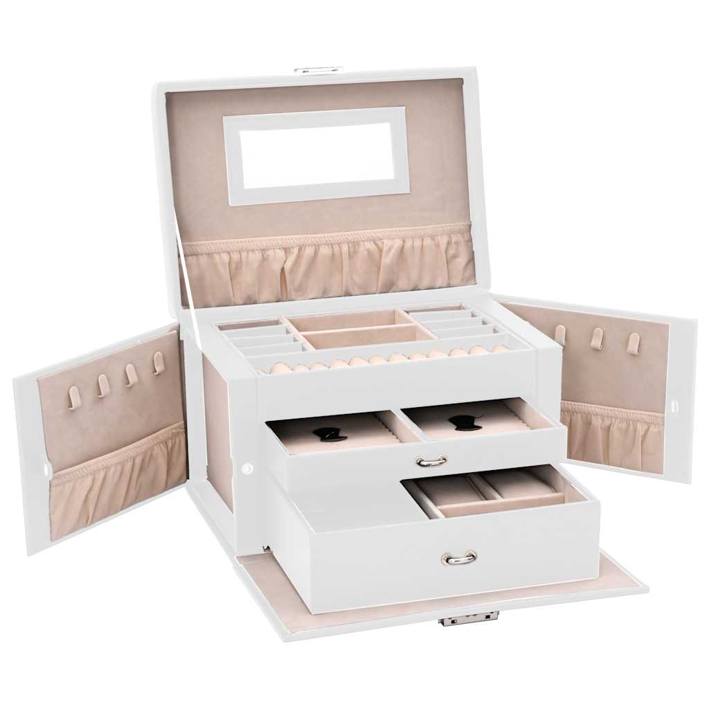 Cutie de bijuterii cu 3 straturi cu oglindă încuiată albă GartenMobel Dekor