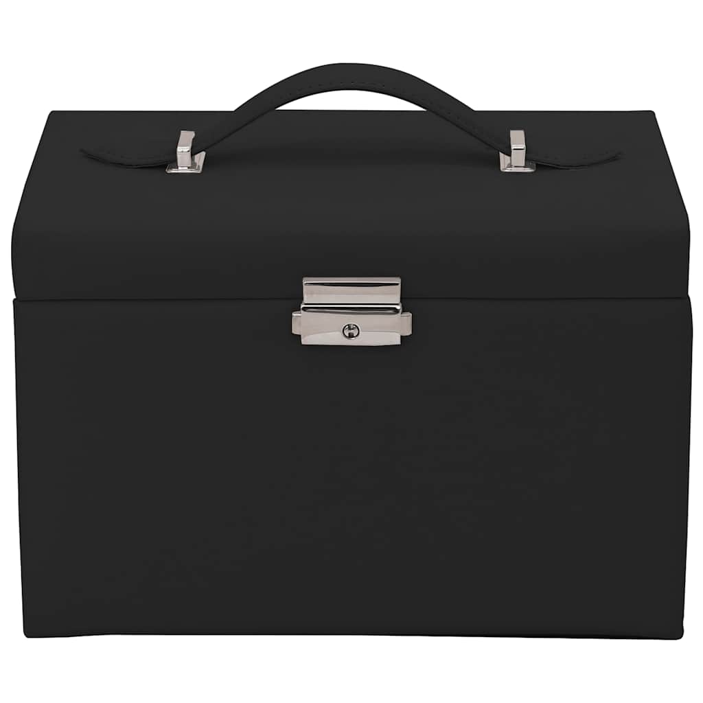 Cutie de bijuterii cu 4 straturi cu oglindă încuiată neagră GartenMobel Dekor