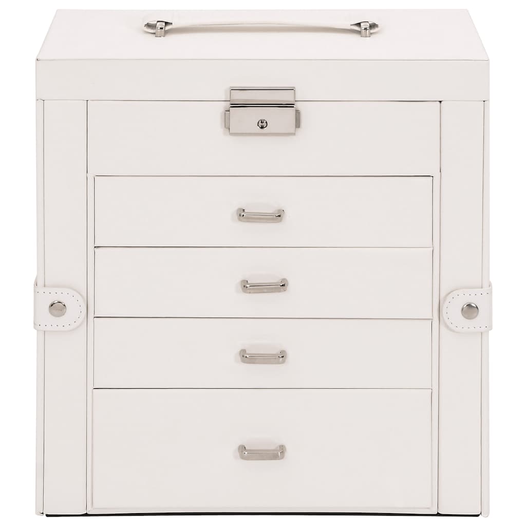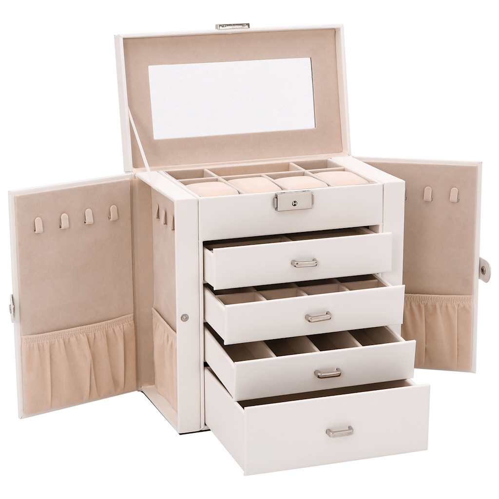 Cutie de bijuterii cu 5 straturi cu oglindă încuiată albă GartenMobel Dekor