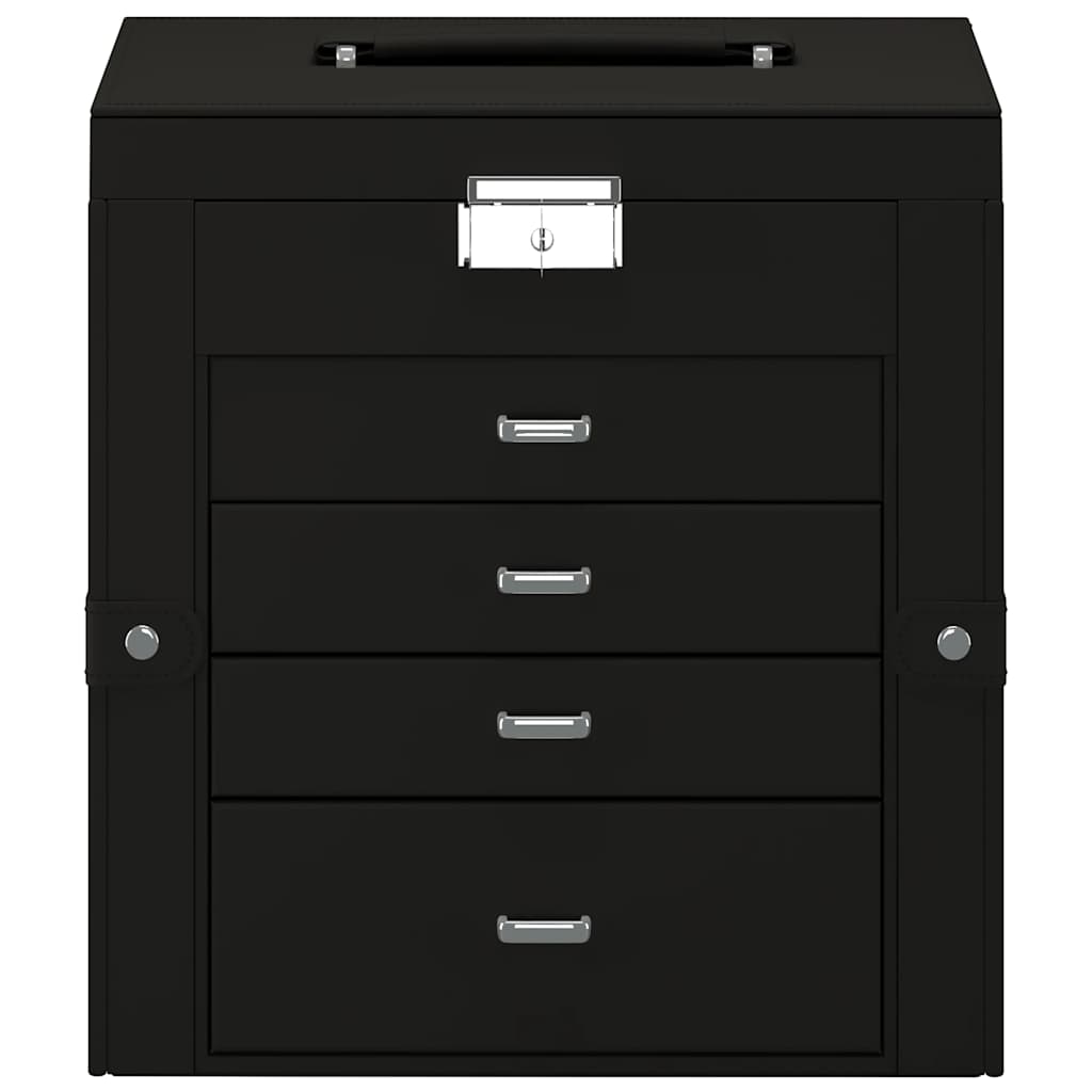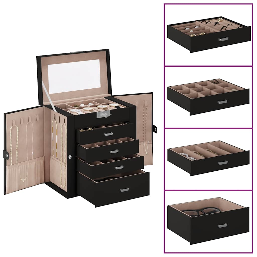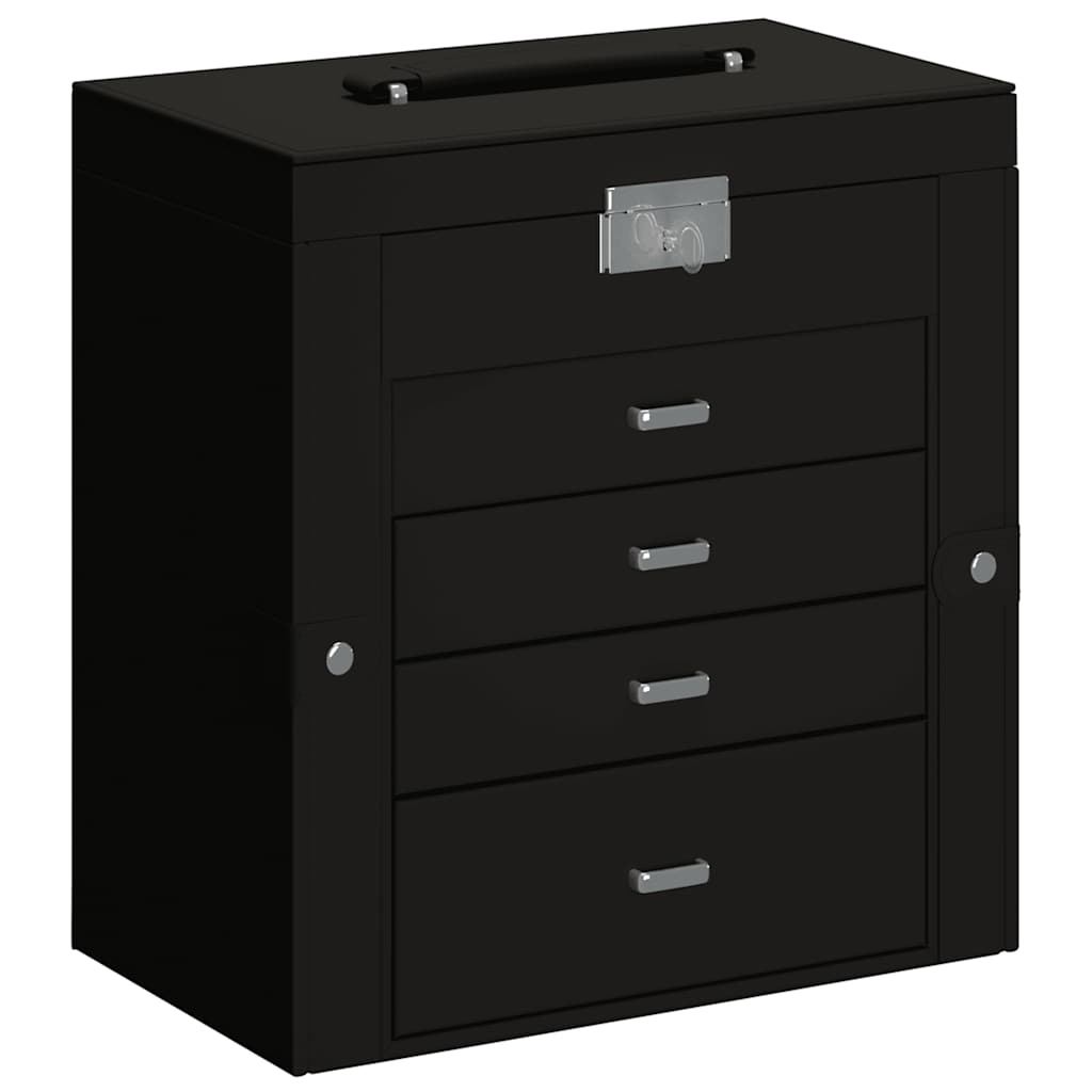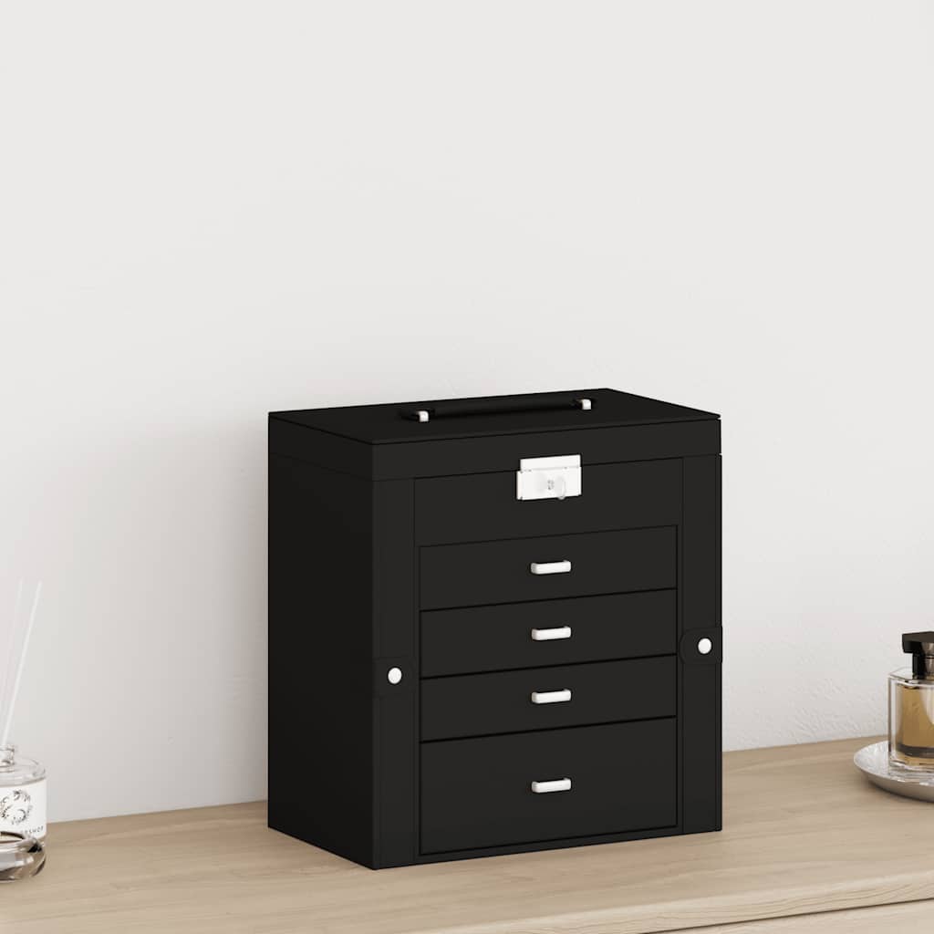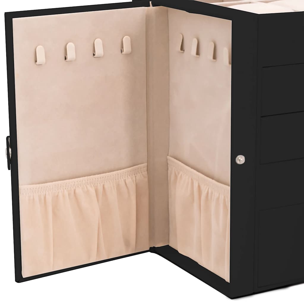 Cutie de bijuterii cu 5 straturi cu oglindă încuiată neagră GartenMobel Dekor