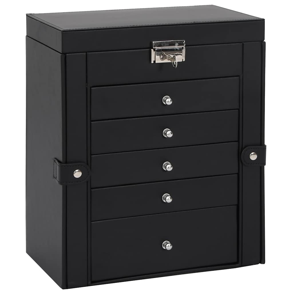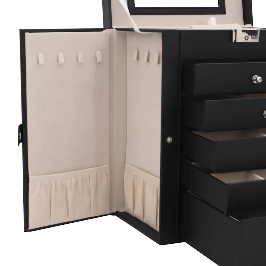 Cutie de bijuterii cu 6 straturi cu oglindă încuiată neagră GartenMobel Dekor