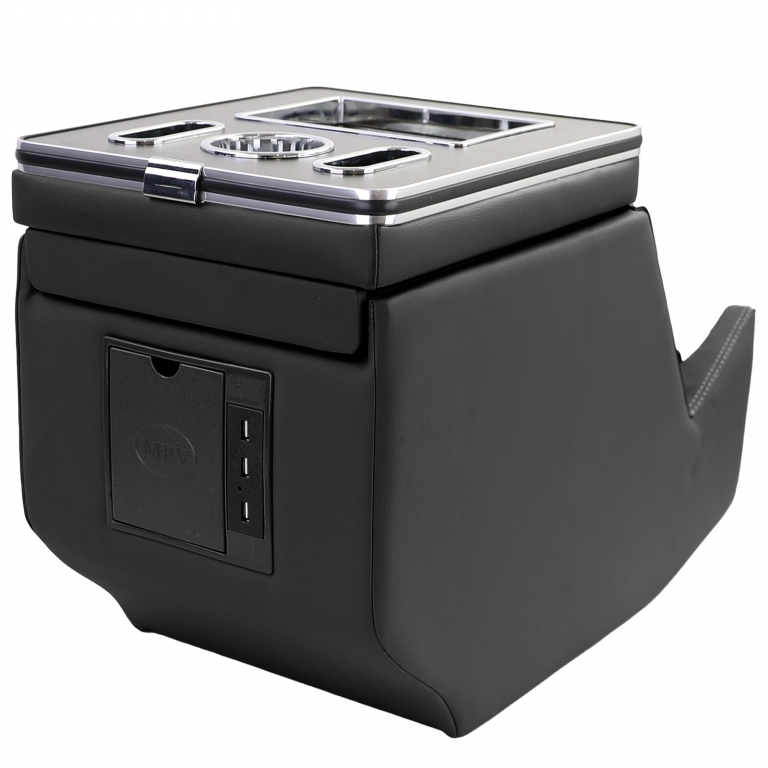 Consola centrală cu cotieră și cutie de depozitare în negru a fost dezvoltată special pentru Mercedes V-Class W447. Cu o lungime de 55 cm, o înălțime de 38 cm și o lățime de 30 cm, se potrivește perfect în interiorul vehiculului. Compartimentele de depozitare sunt echipate cu iluminare LED albastră, care poate fi activată și dezactivată după cum este necesar.Această consolă oferă funcții versatile, inclusiv o priză de 12V pentru alimentarea dispozitivelor electronice. Diverse compartimente de depozitare permit organizarea articolelor personale. Cotiera este glisantă și ascunde un compartiment de depozitare mare dedesubt.Consola dispune de un total de 5 porturi USB, 2 în față și 3 în spate, pentru a conecta mai multe dispozitive simultan. De asemenea, sunt integrate două suporturi pentru pahare, unul plasat deasupra și cel din spate fiind pliabil.Conectarea este simplă și se poate face fie prin cablul existent de 60 cm lungime la bricheta auto, fie direct la sistemul electric de 12V al vehiculului. Această consolă centrală oferă astfel o actualizare practică și confortabilă pentru interiorul Mercedes V-Class W447.Mercedes V-Class V220 / V250Tip W447An 2014-2019 (model pre-facelift)Informații de Siguranță a ProdusuluiProducător: Carparts-Online GmbHBrauckstr. 47, 58454 WittenContact: info@carparts-online.deInstrucțiuni de Siguranță:Atenționare de Siguranță pentru Ambalaj:Există un risc de accidentare din cauza marginilor ascuțite de hârtie, carton sau folie, precum și a clipsurilor metalice ascuțite.Materialul de ambalare nu este un jucărie. Risc de sufocare pentru copii sau animale.Atenționare de Siguranță pentru Produs:Articolul poate avea margini ascuțite. Risc de accidentare.Recomandăm instalarea de către un atelier auto calificat.