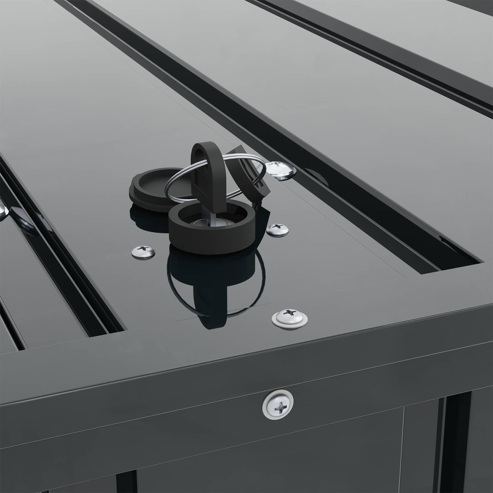 - Construcție robustă din oțel Cutia de depozitare e fabricată din oțel de calitate, asigurând rezistență și durabilitate în condiții de exterior. Ecreată pentru a face față vremii, materialul e prietenos cu uzura, rămânând un element constant în grădină.