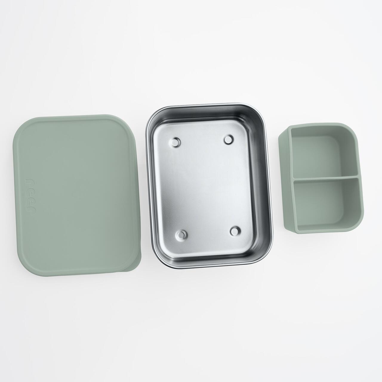 Cutie de pranz pentru alimente, din inox, cu compartimente din silicon, capac din silicon, fara BPA, lavabile in masina de spalat vase, Reer Lunchbox 25143