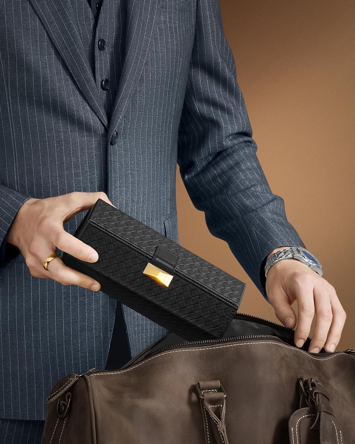 Compacta si usor de strecurat in bagaj, geanta de mana sau rucsac, este alegerea potrivita pentru vacante, delegatii sau weekenduri. Aspectul premium in nuanta negru cerneala si detaliul metalic elegant o transforma si intr-un cadou inspirat pentru pasionatii de ceasuri.