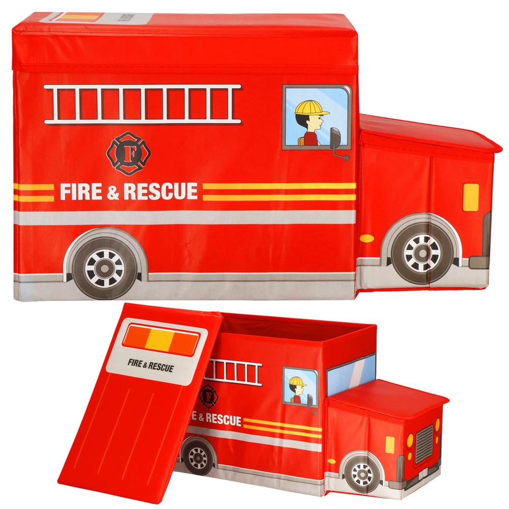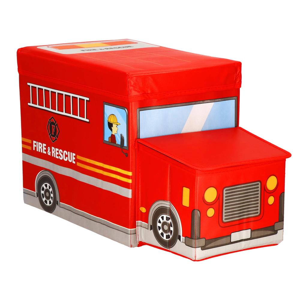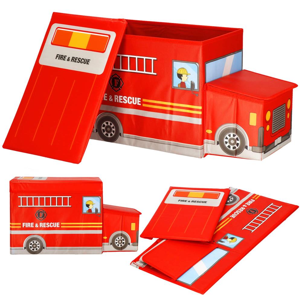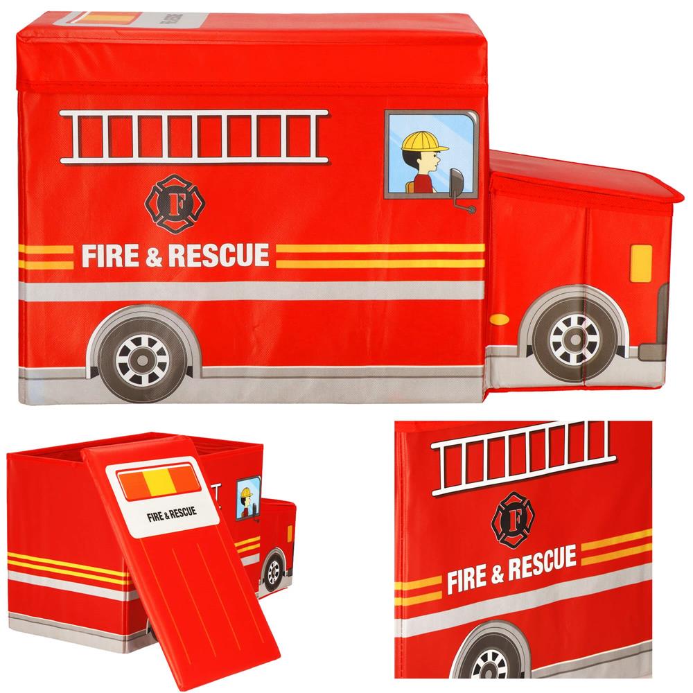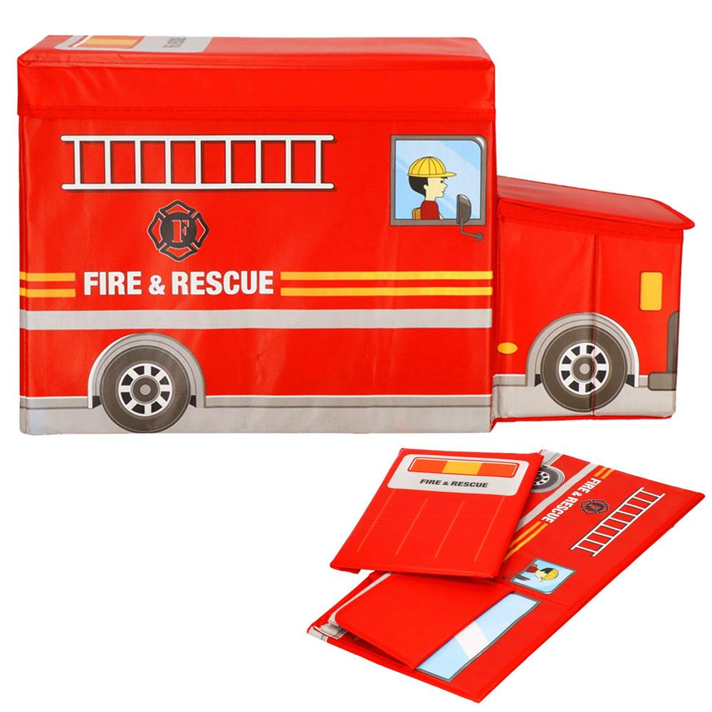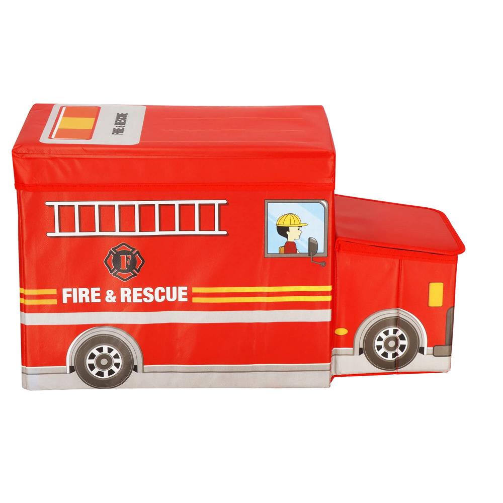 Cutie depozitare jucarii, pliabila cu capac, model masina pompieri, 32x26x56cm, alb Household NewTrend