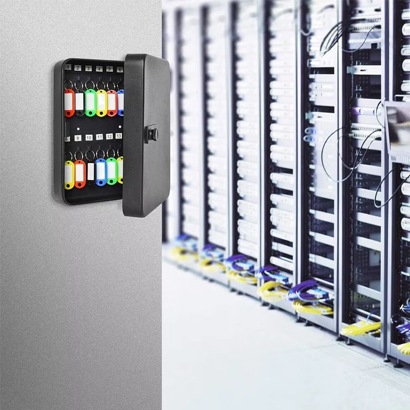 Cutie metalică pentru chei cu cifru PIN, montaj pe perete, 48 cârlige, neagră