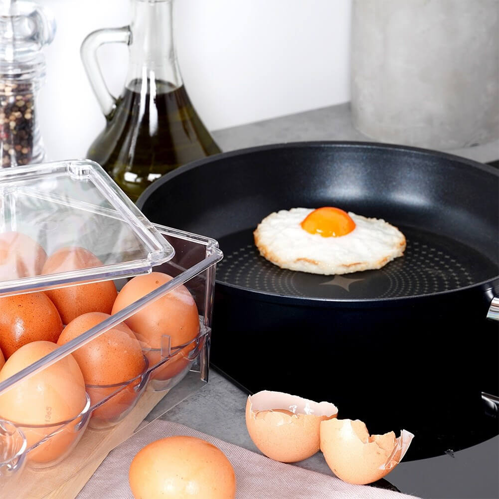 Păstrează frigiderul ordonat cu această cutie organizator pentru ouă Vilde, ideală pentru depozitarea în siguranță a până la 24 ouă. Fabricată din plastic transparent, îți permite să vezi rapid stocul, iar locașurile individuale ajută la așezarea corectă a fiecărui ou.