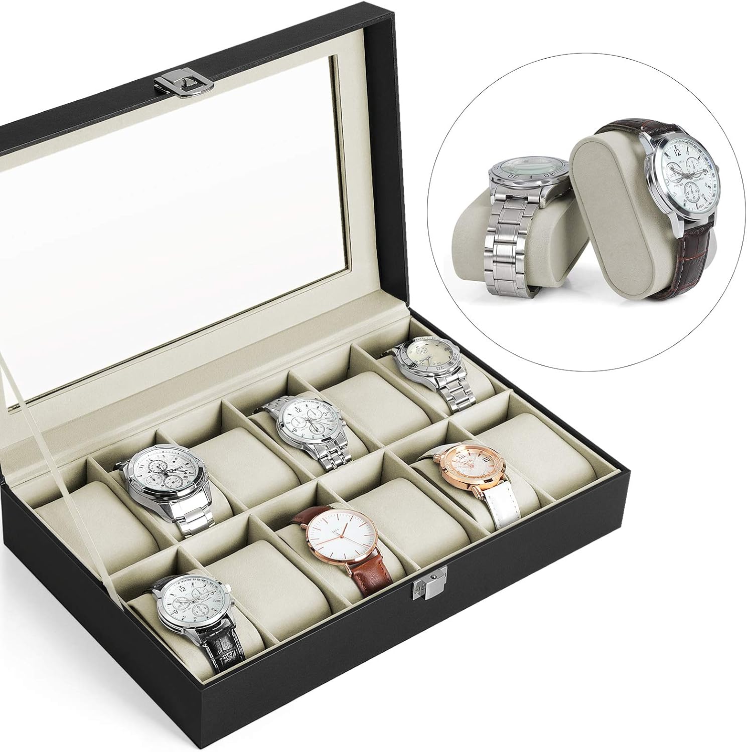 Cutie pentru depozitare ceasuri SONGMICS, 12 compartimente, sticla