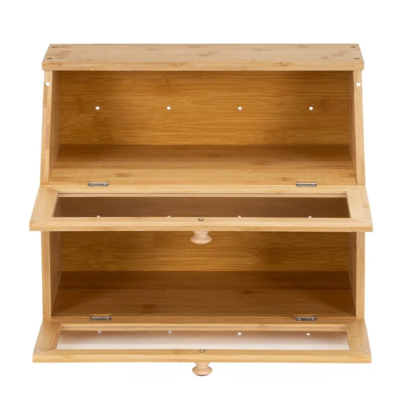Cutie pentru paine cu 2 niveluri din bambus, cu ferestre transparente si inchidere magnetica, 39x25x32 cm, natur Household NewTrend