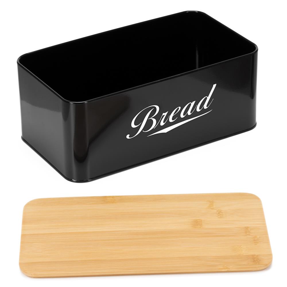 Cutie pentru paine din metal negru cu capac din bambus, 33x18x14 cm