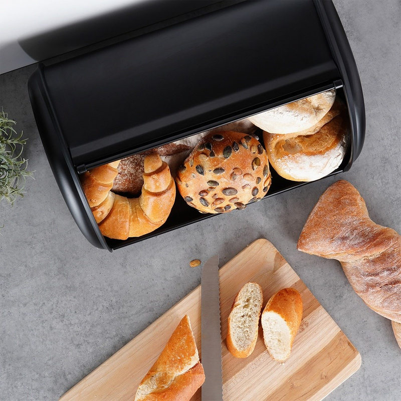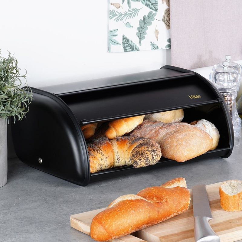 Păstrează pâinea gustoasă și bine protejată cu această cutie pentru pâine Vilde, realizată din oțel inoxidabil cu finisaj negru mat. Designul modern se potrivește ușor în orice bucătărie, iar capacul rabatabil îți oferă acces rapid la conținut.