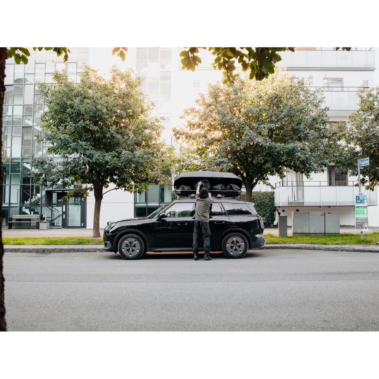 Pentru utilizare usoara in fiecare zi, cutia de plafon Thule este prevazuta cu deschidere DualSide, astfel incat poti incarca si descarca bagajele de pe ambele parti ale masinii. Sistemul SlideLock separa functiile de inchidere si deschidere, blocand automat capacul si indicand cand acesta este inchis corect, pentru un plus de siguranta.