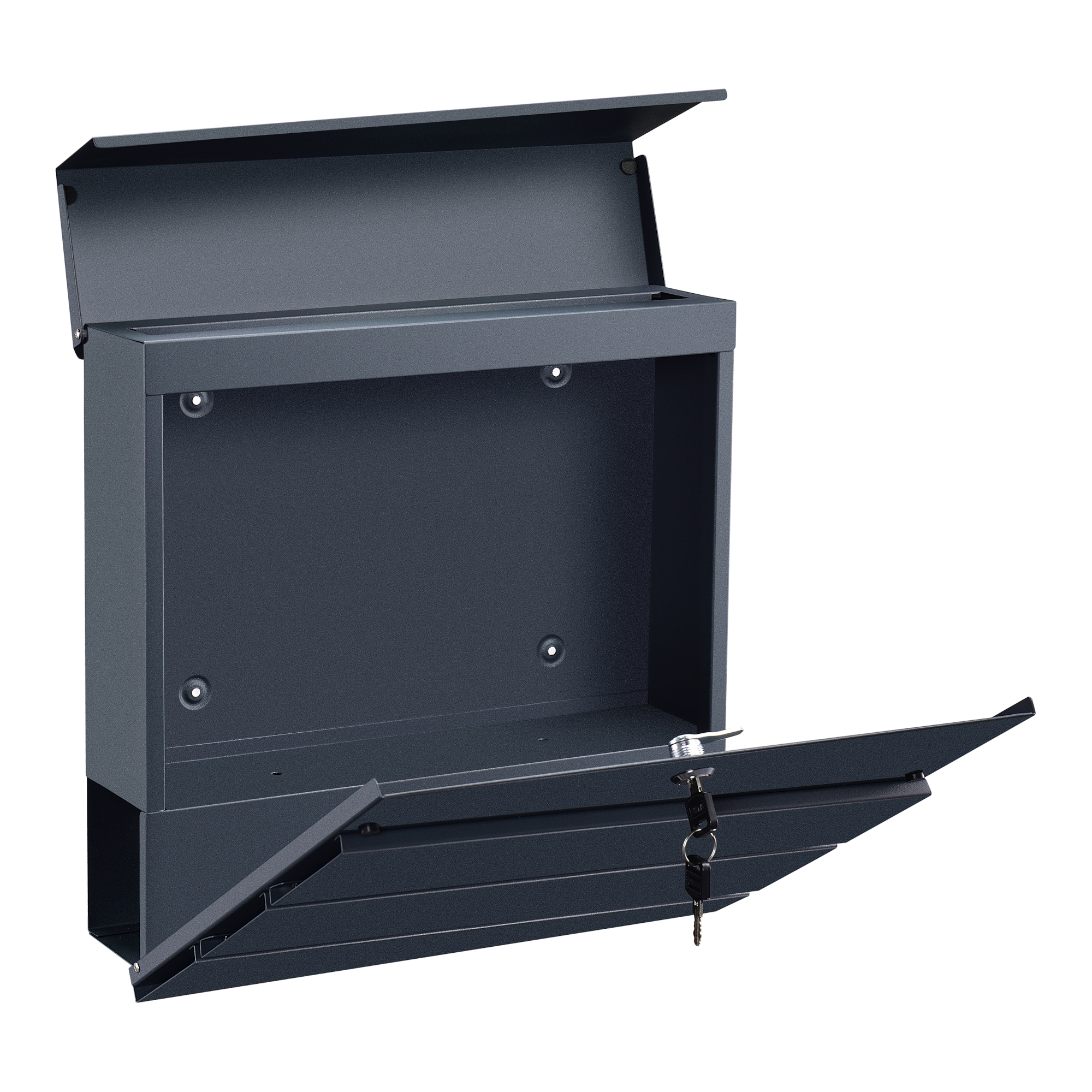 Aceasta cutie pentru scrisori moderna este accesoriul practic, prevazut cu o fanta mare si suport pentru ziare.