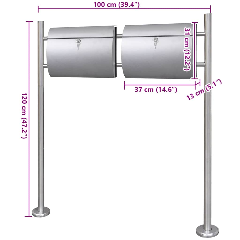 Cutie poștală dublă pe suport din oțel inoxidabil GartenMobel Dekor