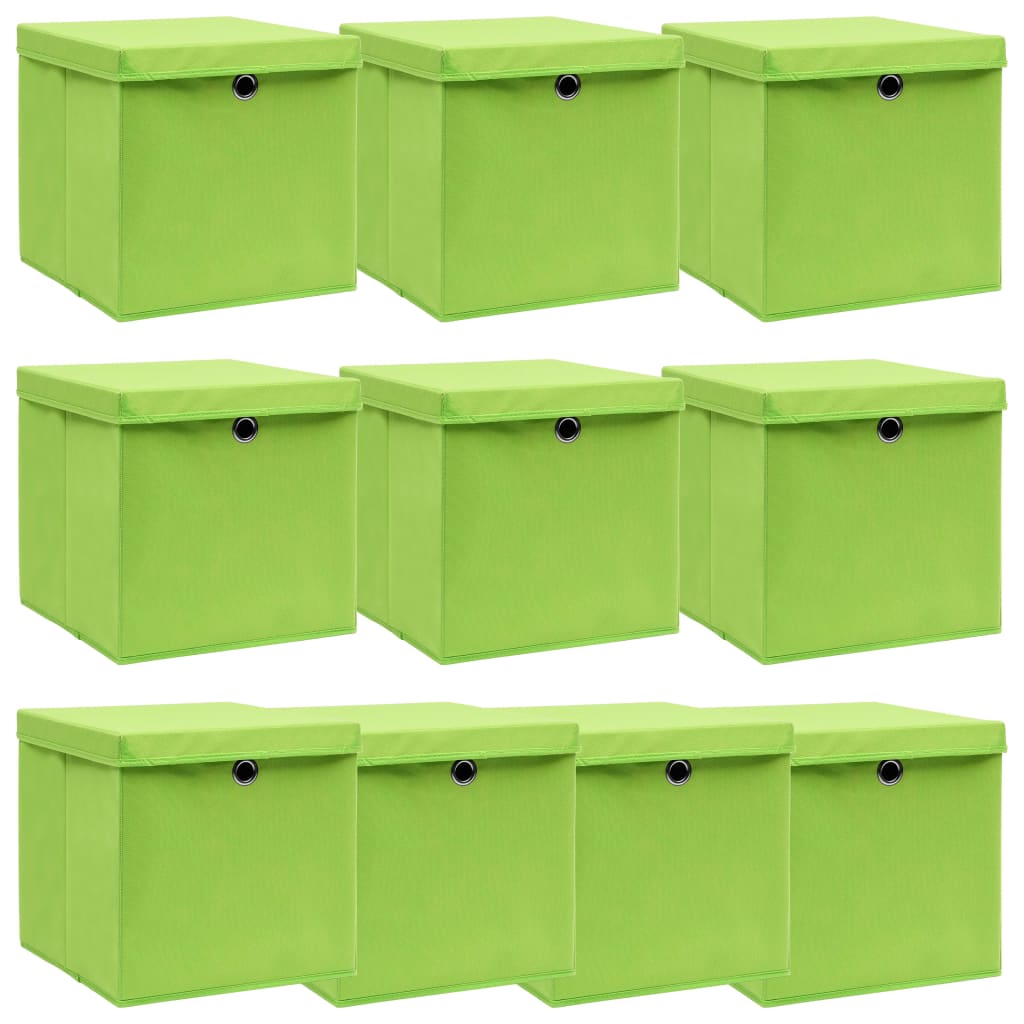 Cutii depozitare cu capace 10 buc. verde, 32x32x32 cm, textil GartenMobel Dekor