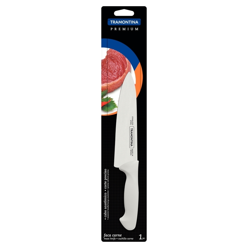 Cutit pentru carne, gama PREMIUM, lama din inox de foarte buna calitate, procesul special de calire al lamei asigura o durabilitate mare a taisului, lungime lama 203 mm, maner din polipropilena rezistenta si durabila, este aplicat pe lama prin injectare, lungime totala 415 mm, ambalat in blister.