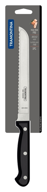 Cutit pentru paine gama ULTRACORTE, lama din inox de foarte buna calitate, lungime lama 177mm, maner cu protectie antimicrobiana fabricat din polipropilena foarte rezistenta, fixat prin nituire, se poate curata in masina de spalat vase, lungime totala 300mm, ambalat in blister.