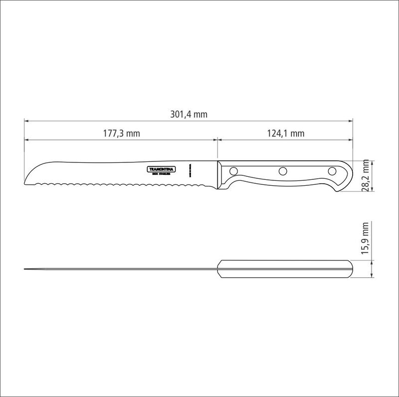 Specificatii Cutit paine, inox, lungime lama 177mm,