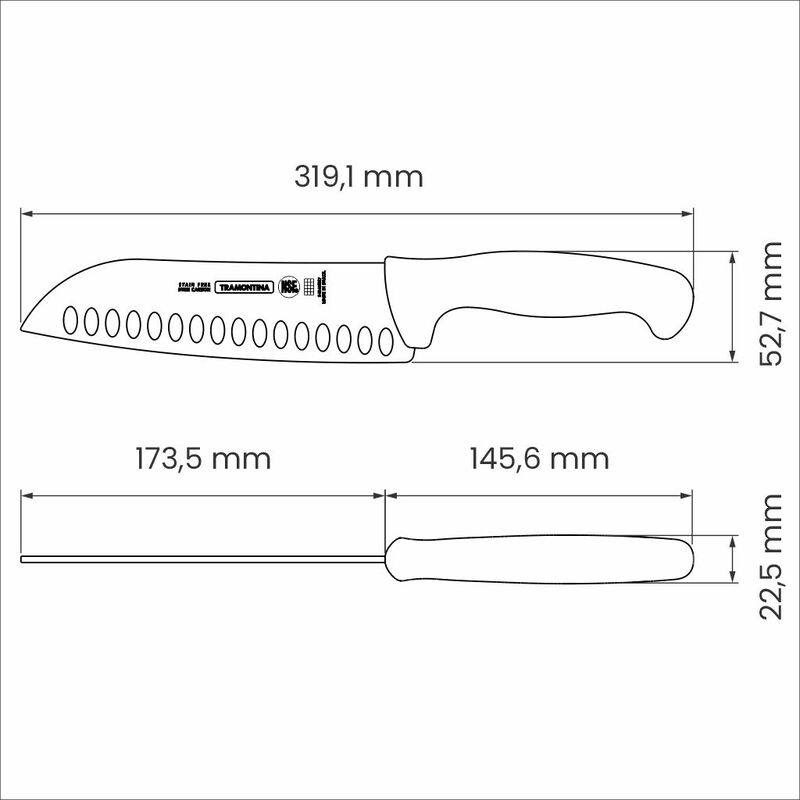 Specificatii Cutit santoku Tramontina, inox, lama 177