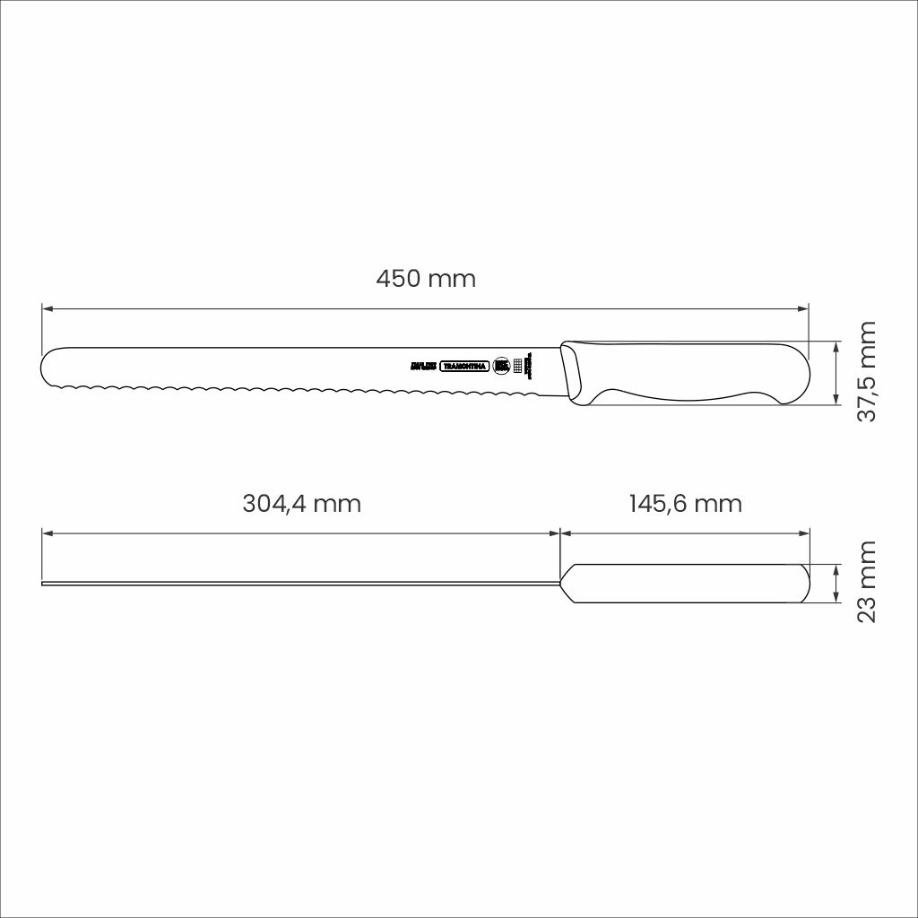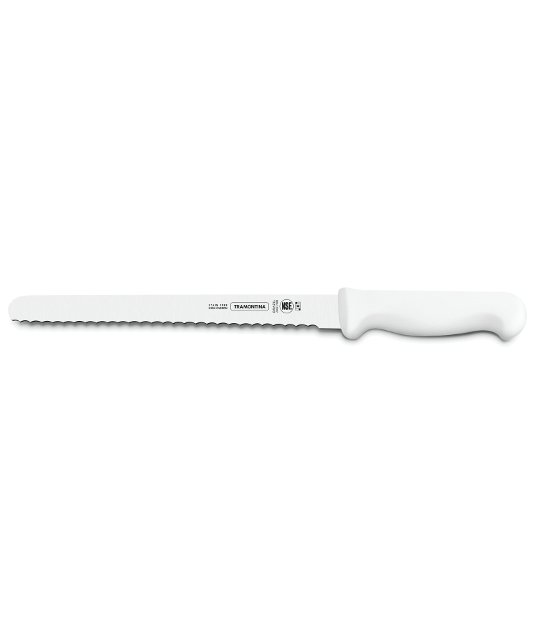 Cutit pentru sunca/paine, gama PROFISSIONAL MASTER, lama din inox de foarte buna calitate (DIN 1.4110) supus unui tratament termic special constand in calire, tratare sub 0ºC (congelare) si intarire, in vederea obtinerii unei duritati de peste 56 HRC, lungime lama 304 mm, maner culoare alba din polipropilena cu protectie antimicrobiana Microban®, produs cu certificare NSF U.S.A., lungime totala 400 mm