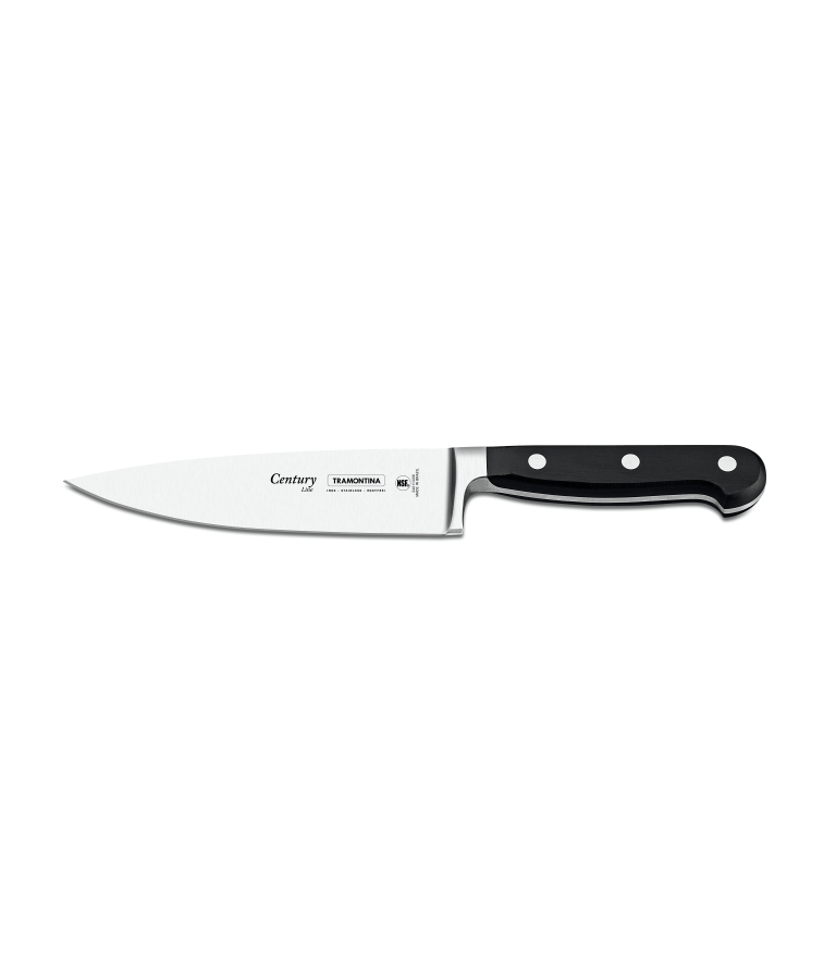 Cutit bucatar gama CENTURY, lama forjata din inox de foarte buna calitate (DIN 1.4110) supus unui tratament termic special constand in calire, tratare sub 0ºC (congelare) si intarire, in vederea obtinerii unei duritati de peste 56 HRC, lungime lama 203 mm; maner ergonomic din policarbonat ranforsat cu fibra de sticla, fixat prin nituire, asigura confort si siguranta in momentul taierii; produs cu certificare NSF U.S.A.; se poate curata in masina de spalat vase