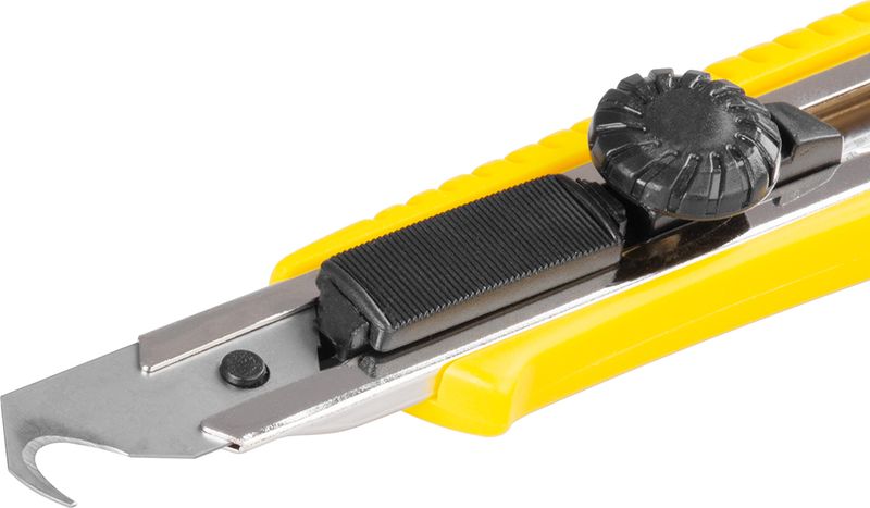 Cutterul (cuțitul cu lamă segmentată) Strend Pro UK225 cu lățime de 18 mm este o unealtă practică pentru atelier, casă sau șantier, potrivită pentru tăieri curate și controlate. Are șină de ghidare metalică, lamă culisantă și blocare de siguranță, pentru o utilizare confortabilă și sigură. Cârligul integrat ajută la agățare și depozitare rapidă, iar mânerul ergonomic oferă priză bună în timpul lucrului.