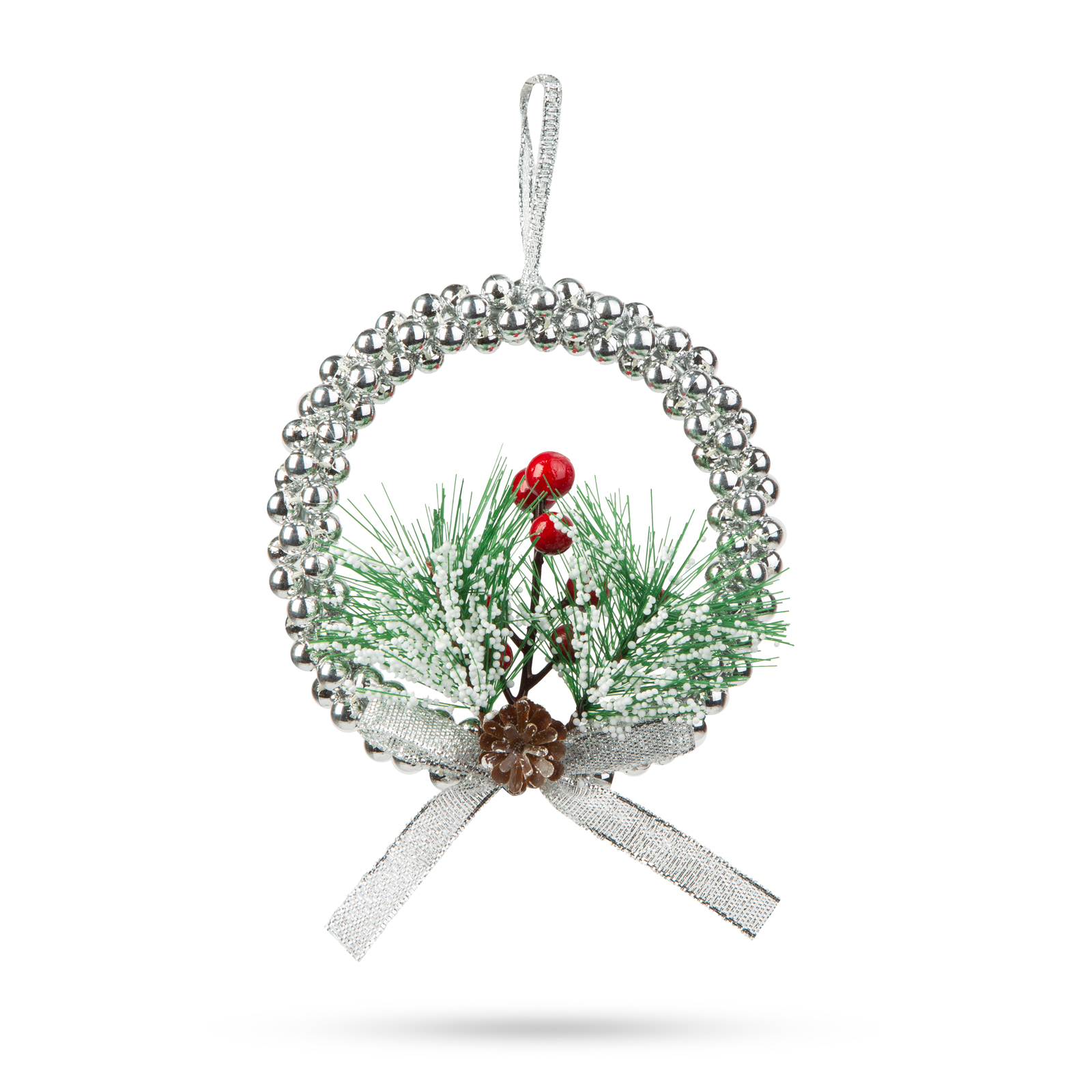 Cu această coroană argintie, strălucitaore, îți poți decora cu ușurință casa în timpul sezonului de Crăciun! O poți agăța cu ușurință în locul dorit cu sfoara din argint. Este potrivit ca decor de brad, dar si ca decor de usa sau in orice alt loc. Fructele de padure rosii viu colorate, o fundita argintie si ramurile si conurile verzi fac ca decorul sa fie cu adevarat placut. Coroana de culoare argintie este universala si atemporala, asa ca se armonizeaza perfect cu orice decor si stil de Craciun.