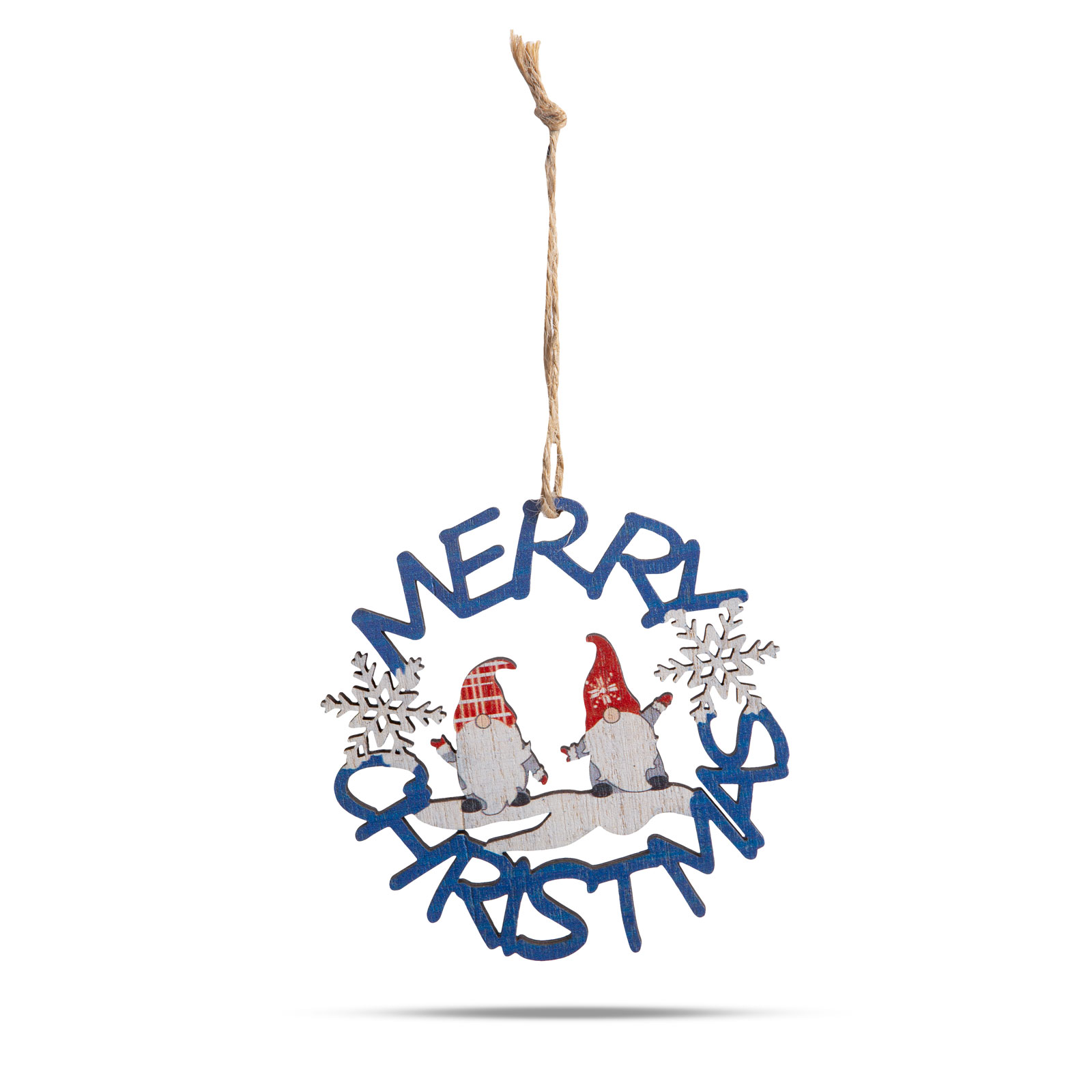 Acest frumos decor din lemn poate fi un plus perfect pentru Crăciun în casa ta. Piticii drăguți, frumos lucrați, care stau pe cuvintele „Crăciun fericit”, evocă bucuria și distracția sărbătorilor. Ornamentele din lemn conferă căldură și naturalețe oricărei decorațiuni festive. Pictura elaborată și detaliată asigură un aspect meticulos și atrăgător. Figurina este o bucată de lemn puternică, dar ușoară, care poate fi agățată oriunde în casa ta.