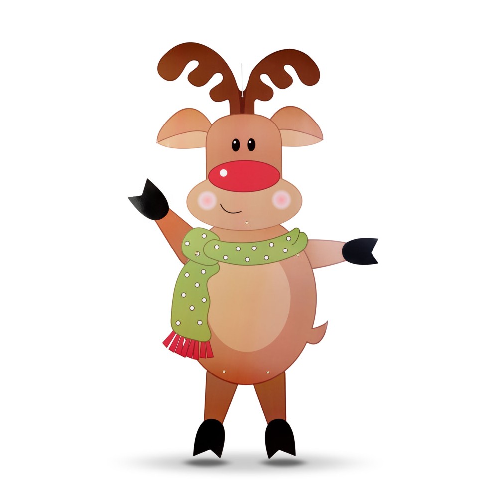Decorează-ți casa cu acest ren mare de hârtie! Este garantat să lumineze interiorul de Crăciun, membrele și capul acestuia pot fi mutate și ajustate după cum doriți. Are 90 cm înălțime și poate fi atârnat, făcându-l ideal pentru decorarea spațiilor mai mari. Este excelent pentru a spori atmosfera de Crăciun și oferă o surpriză plăcută oaspeților care sosesc în perioada sărbătorilor.