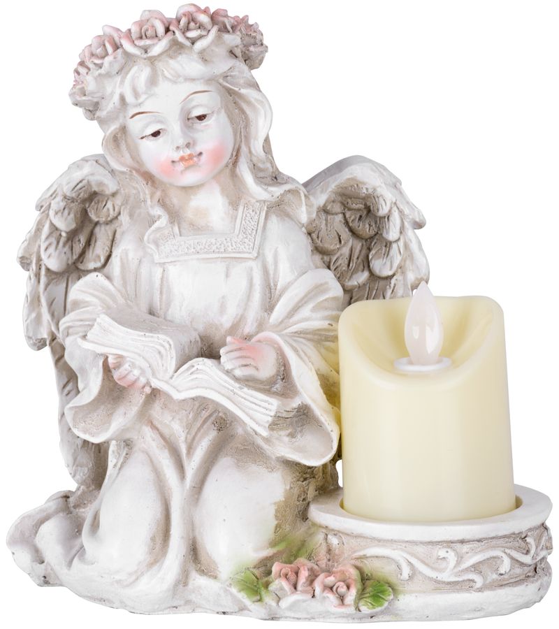 Decor funerar cu inger, carte si lumanare LED MagicHome, 17,5 cm