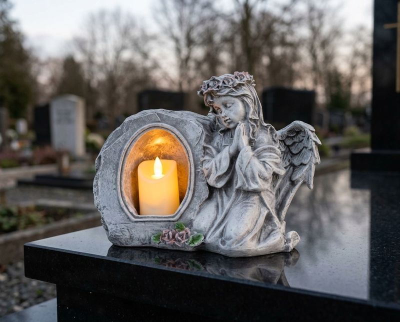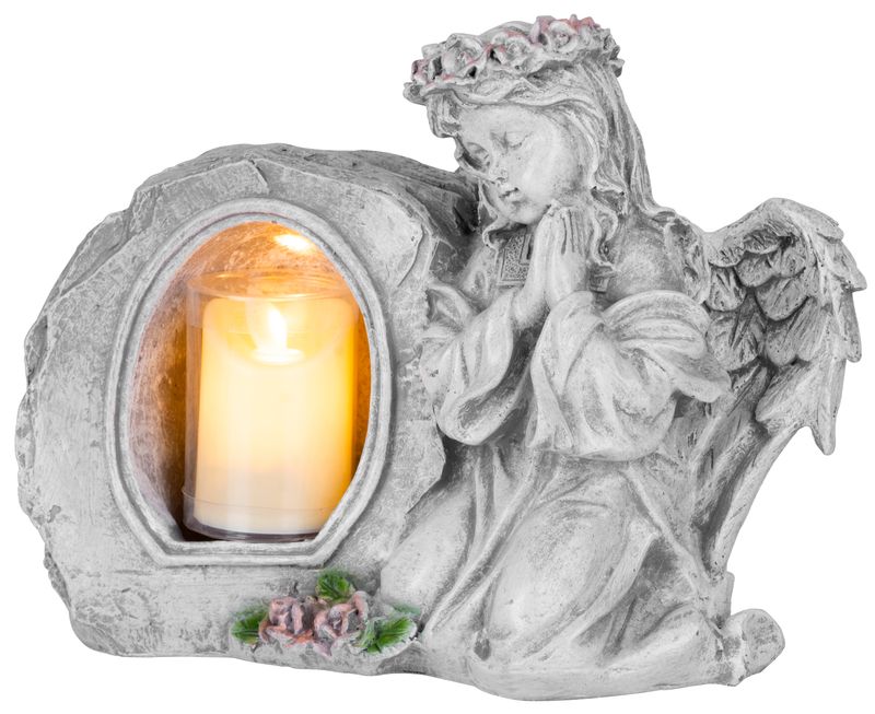 Decor funerar cu inger rugator si lumanare LED, 28x13x21,5 cm