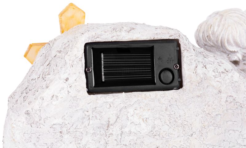 Decorul funerar solar cu inger si cruce este o alegere eleganta si discreta pentru amenajarea unui loc de veci sau pentru completarea unor aranjamente comemorative. Realizat din polyresin, acest ornament are un aspect delicat si transmite un omagiu plin de respect si reculegere.