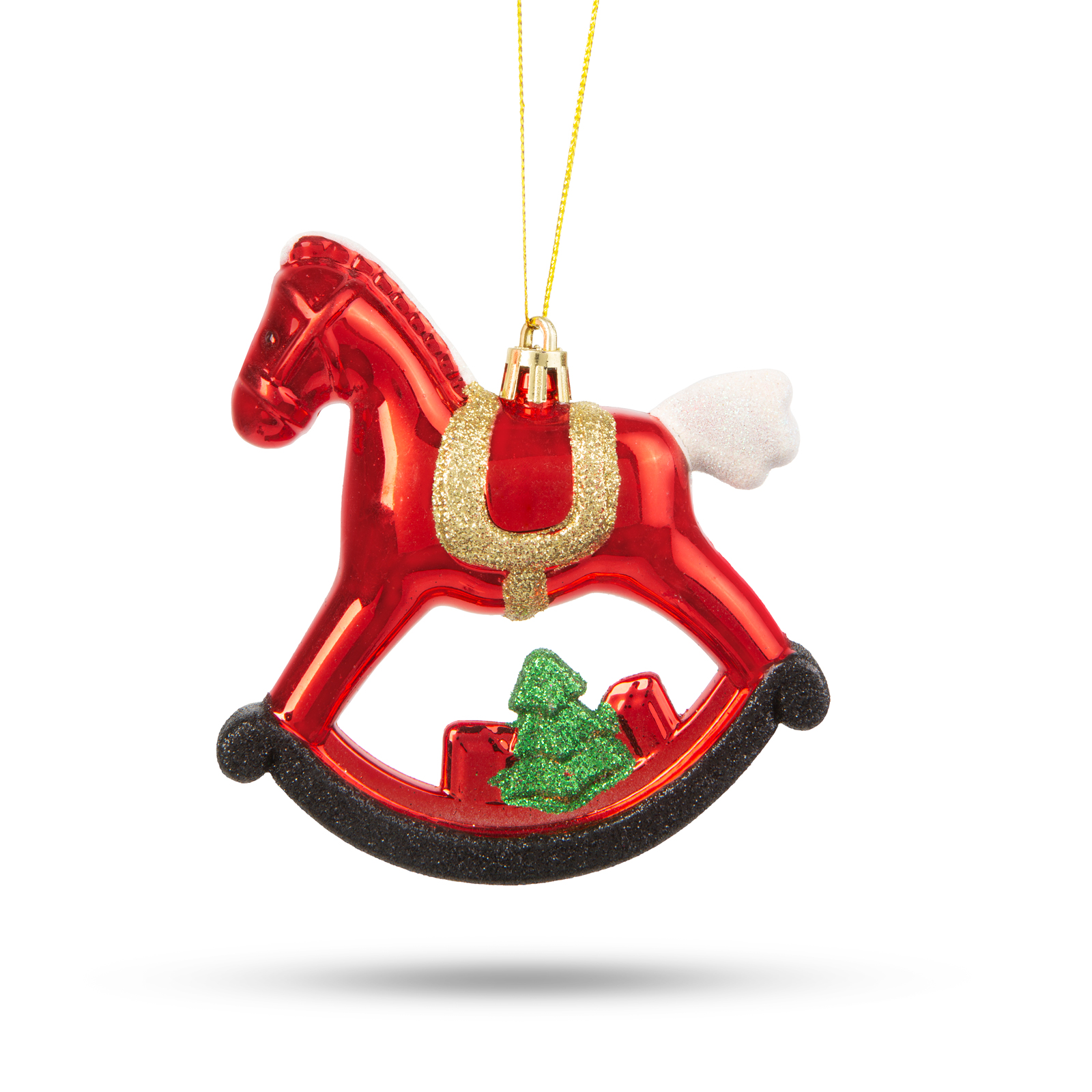 Dimensiunea ornamentului este de 100 x 100 mm, deci va fi un decor frumos pe bradul de Craciun. Ornamentul înfățișează o figurină căluț, bogat detaliată, cu detalii fin lucrate și suprafețe convexe. Poate fi agatat cu usurinta de crengile bradului de Craciun.