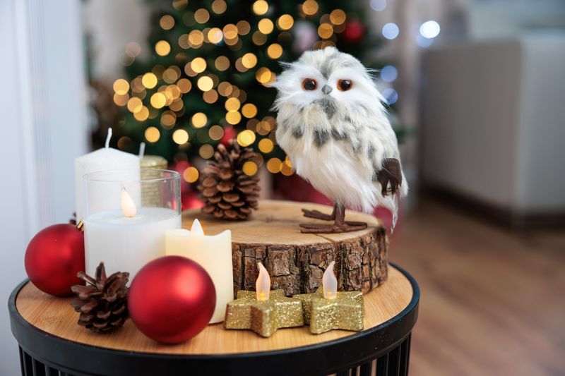Aceasta decoratiune bufnita este usor de integrat in decorurile de iarna, fie ca o asezi pe raft, pe masa festiva sau intr-un colt tematic de Craciun. Nuanța crem ofera un aspect cald si rafinat, potrivit atat pentru decoruri clasice, cat si moderne.