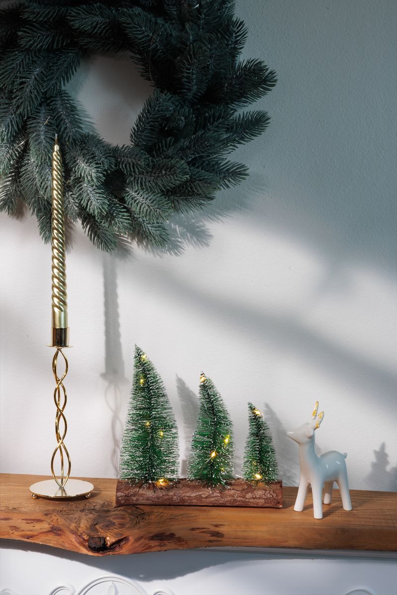 Adaugă un plus de farmec sărbătorilor cu această decorațiune de Crăciun cu LED de la MagicHome, realizată sub forma a 3 brazi decorativi montați pe un suport cu aspect natural. Cele 12 LED-uri cu lumină alb cald oferă o iluminare plăcută și confortabilă, ideală pentru a crea o atmosferă festivă în orice încăpere.