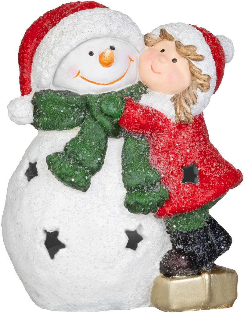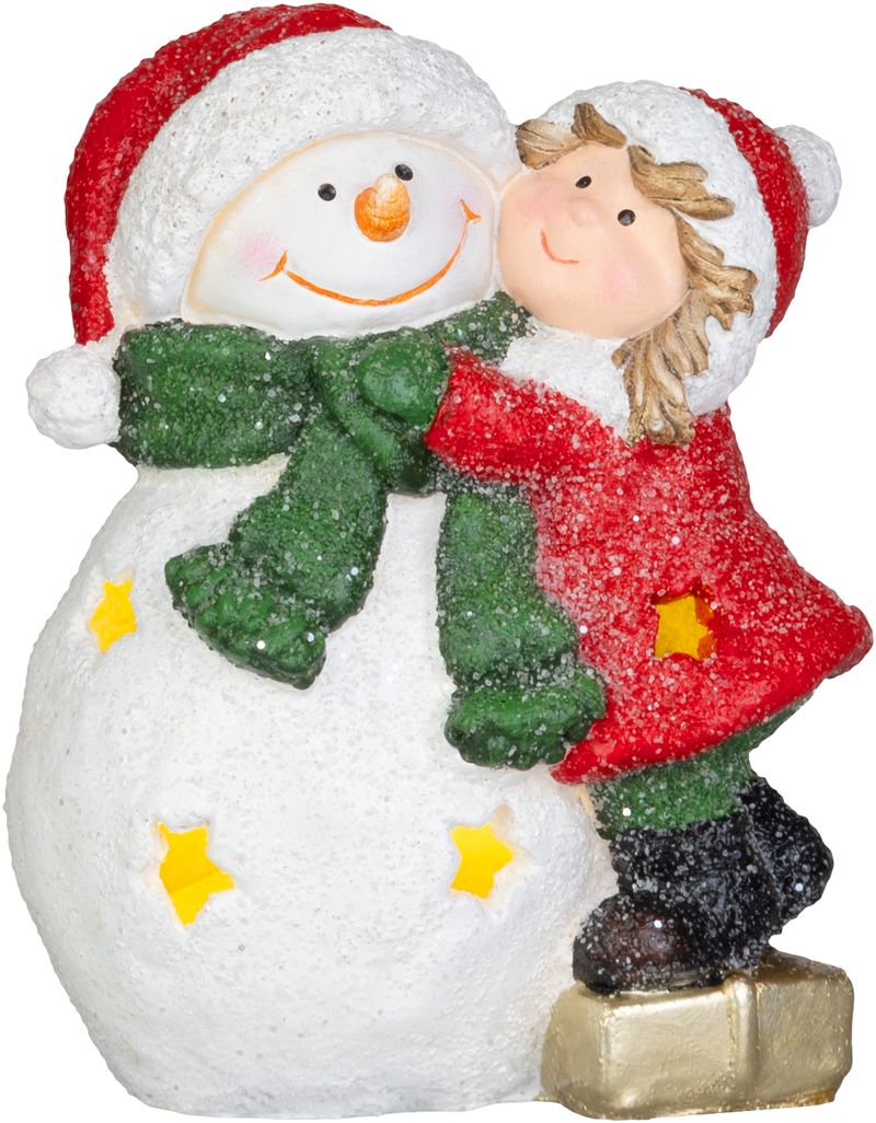 Decoratiune de Craciun cu fetita si om de zapada, LED, 8x12,5x15,8 cm