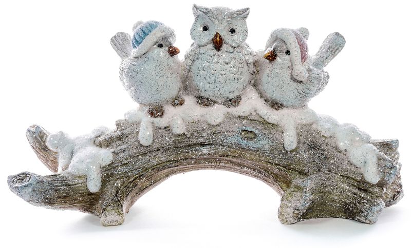 Decorațiune de Crăciun cu păsărele pe ramură, polyresin, 31 cm
