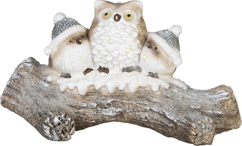 Decorațiune de Crăciun LED cu bufnițe pe trunchi înzăpezit 49,5 cm
