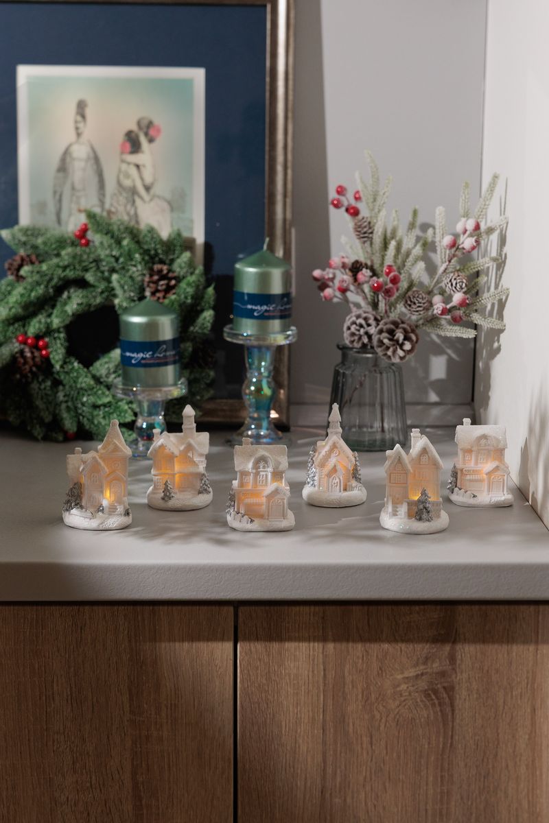 Adaugă un plus de farmec sărbătorilor cu această decorațiune de Crăciun LED în formă de căsuță decorativă. Realizată din plastic și evidențiată de o lumină alb cald, piesa creează o atmosferă primitoare și festivă în orice colț al casei. Designul cu efect de zăpadă și aspect de căsuță de iarnă o face ideală pentru raft, masă, pervaz sau în aranjamente sezoniere.