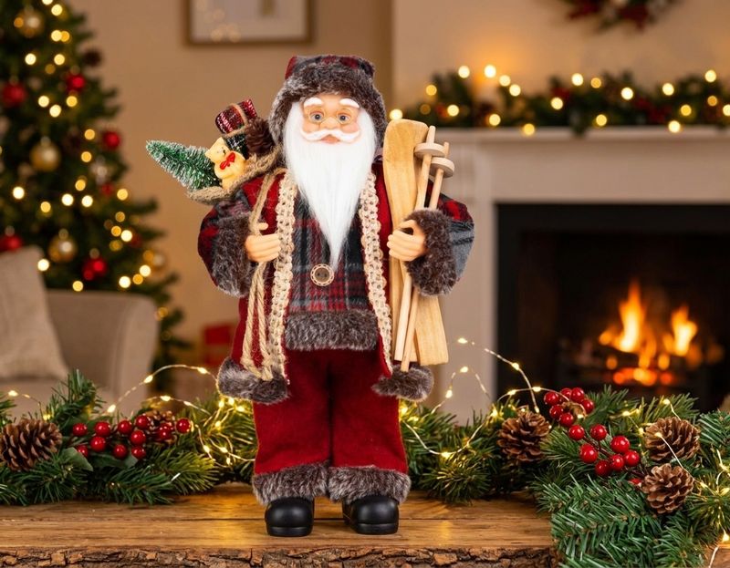 Modelul impresioneaza prin aspectul autentic: barba alba, ochelari, sac cu cadouri, bradut decorativ si accesorii care creeaza o atmosfera calda si traditionala. Este o figurina decorativa de Craciun ideala pentru cei care doresc un plus de eleganta si veselie in amenajarea casei in sezonul rece.