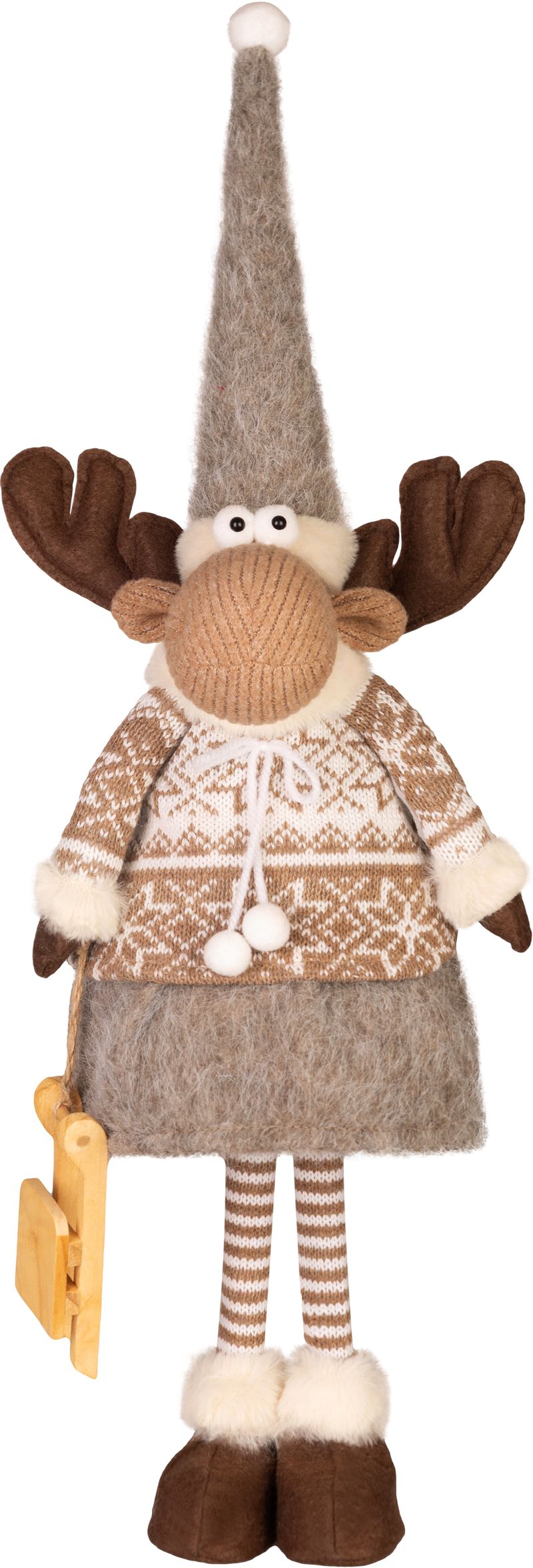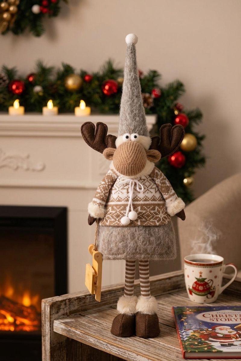 Adaugă un plus de farmec sărbătorilor cu această decorațiune de Crăciun MagicHome în formă de ren fetiță, realizată în tonuri naturale și calde. Designul său simpatic, cu îmbrăcăminte de iarnă, căciulă lungă și detalii atent lucrate, transformă orice colț al casei într-un spațiu primitor și festiv.